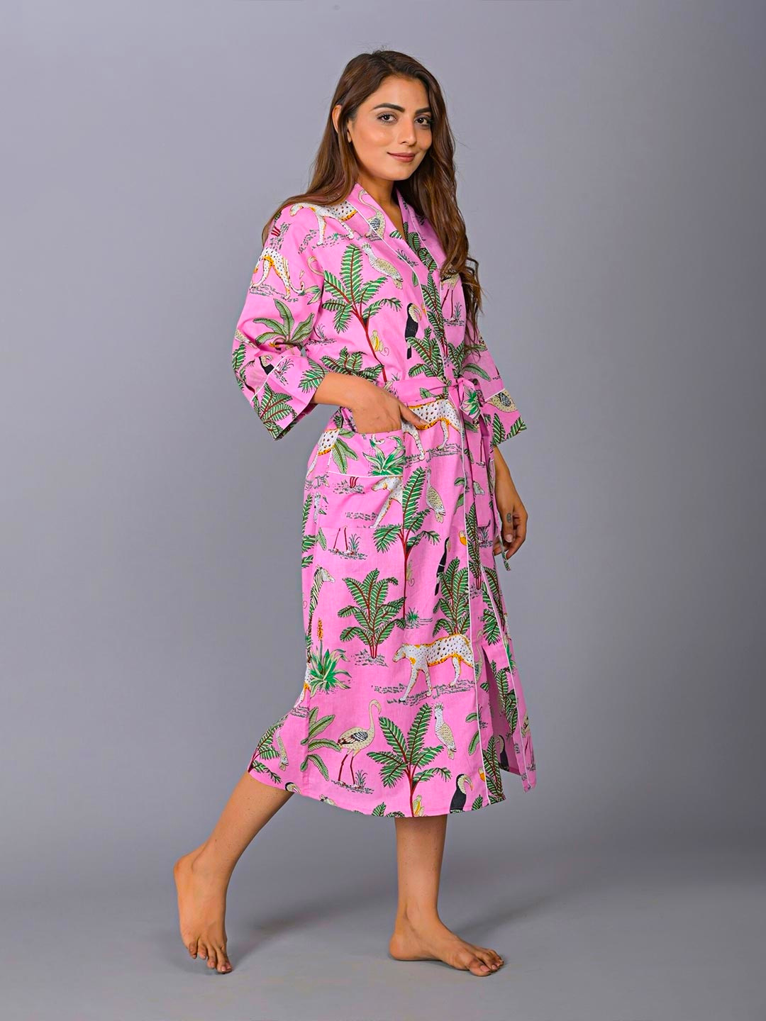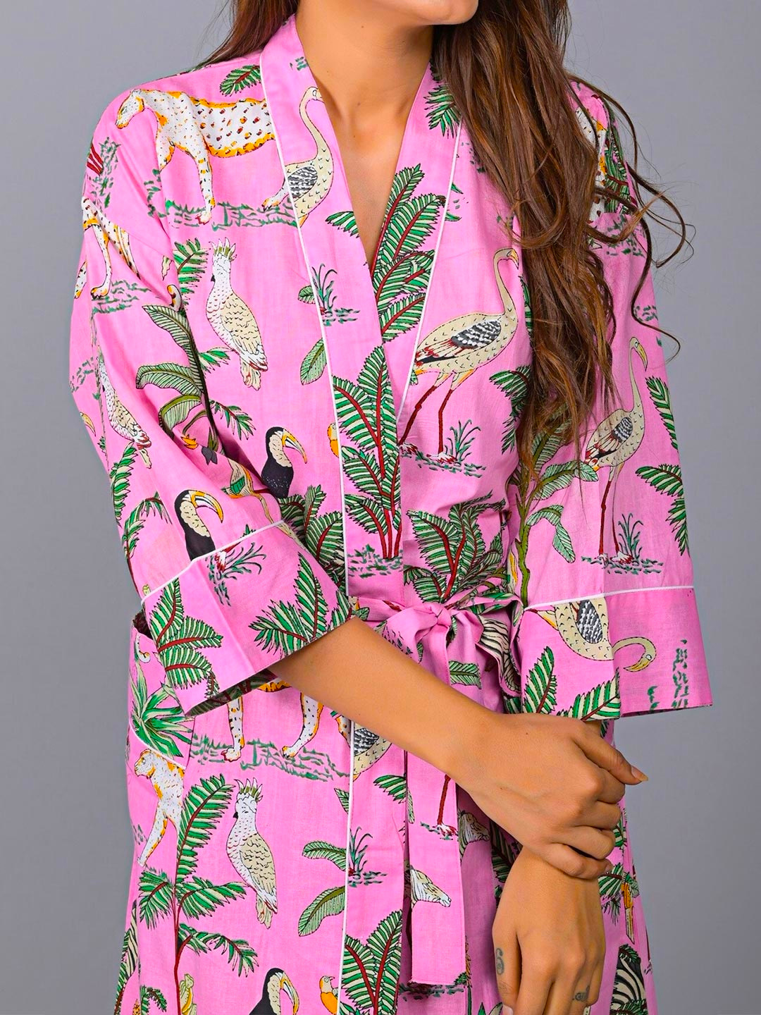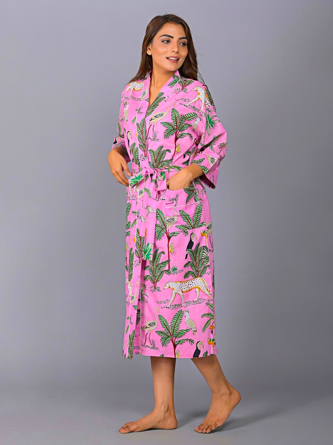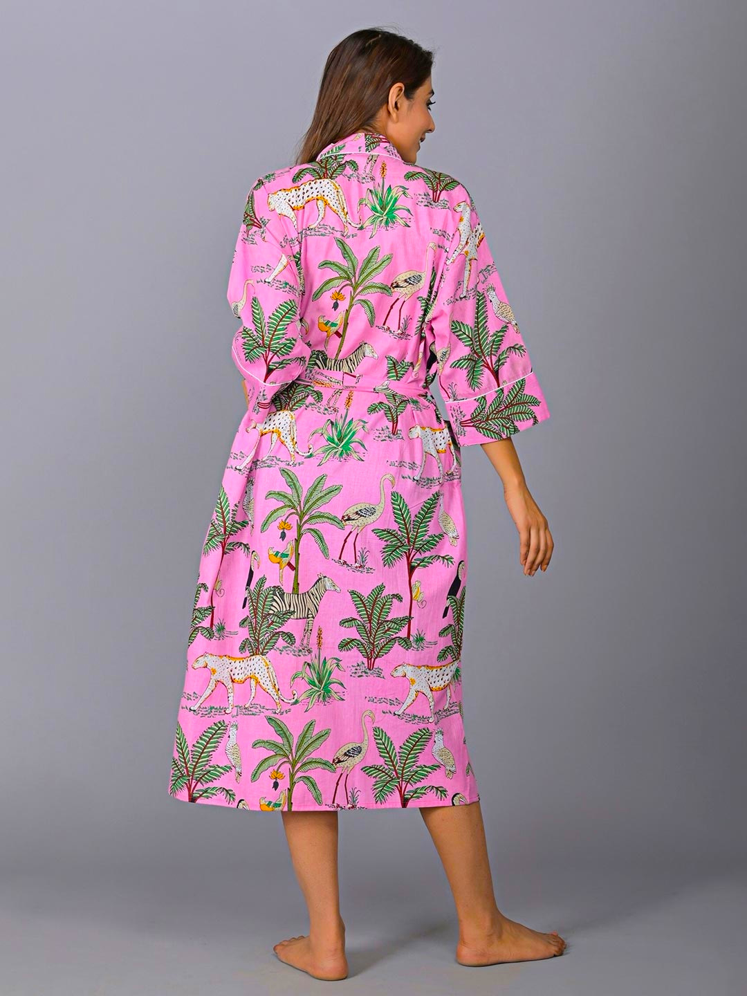 African Jungle Wildlife Print Cotton Kimono Robe Night Gown Bridesmaid Robe Best Gift for Her