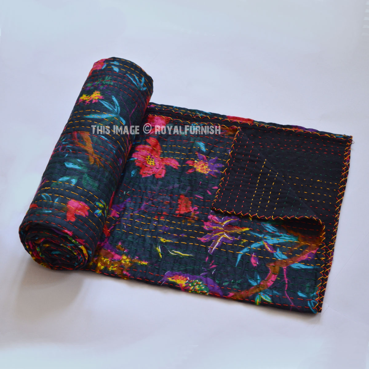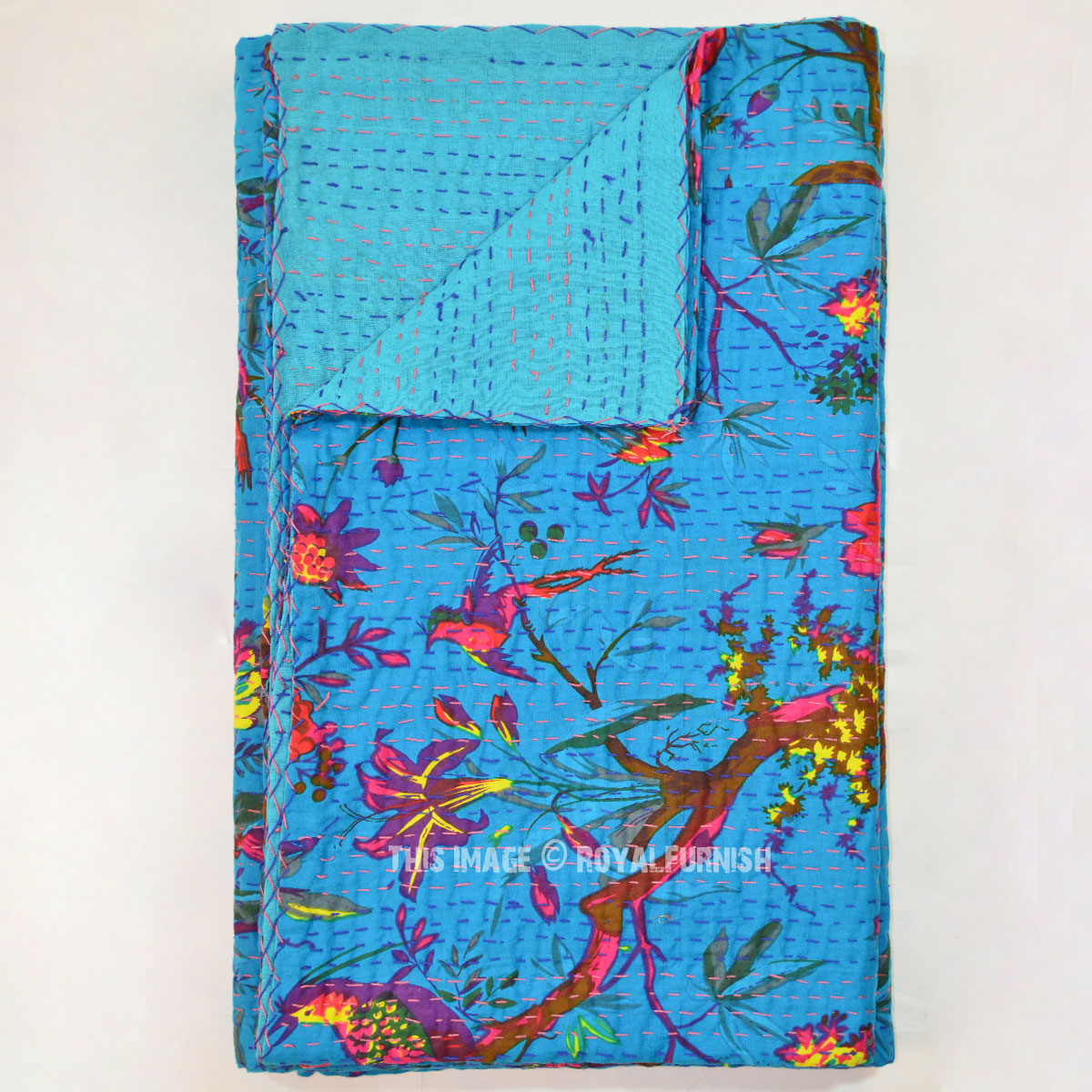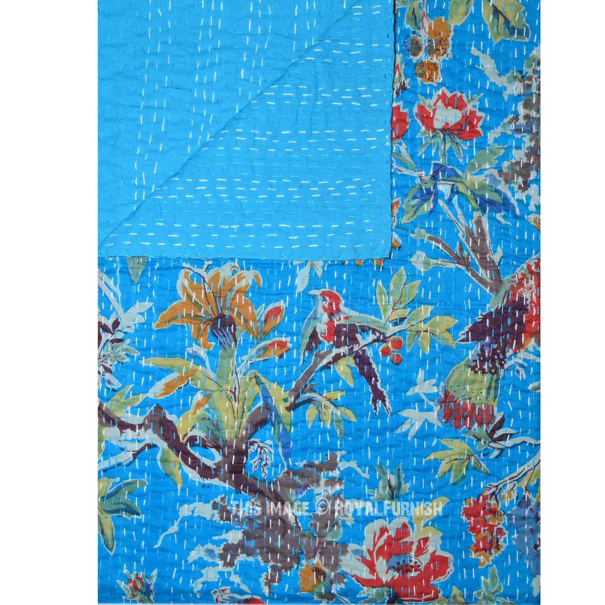 Adds warm, cozy and comforting effect to bedroom interior with Indian birds paradise kantha quilt and improve personality of bedroom interior by adding hand stitching kantha quilts. It is made in rural areas of India where women do this hand stitching traditional kantha stitching on cotton fabric. A multipurpose quilt can be used as throw, quilt and blanket. Add a wonderfully homely air to any bedroom, infusing it with love and charm.