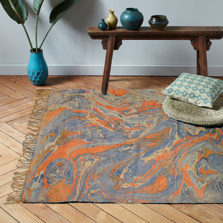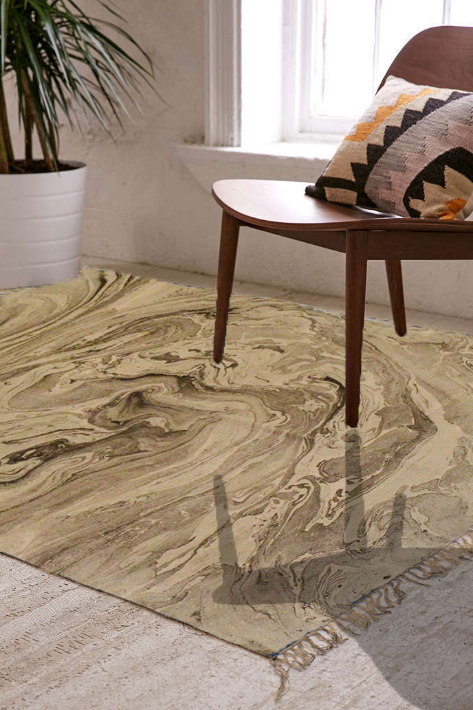 Give bare floors a quick & easy makeover with marble print cotton area rug. It will set the tone, color scheme and comfort to your living space or bedroom.