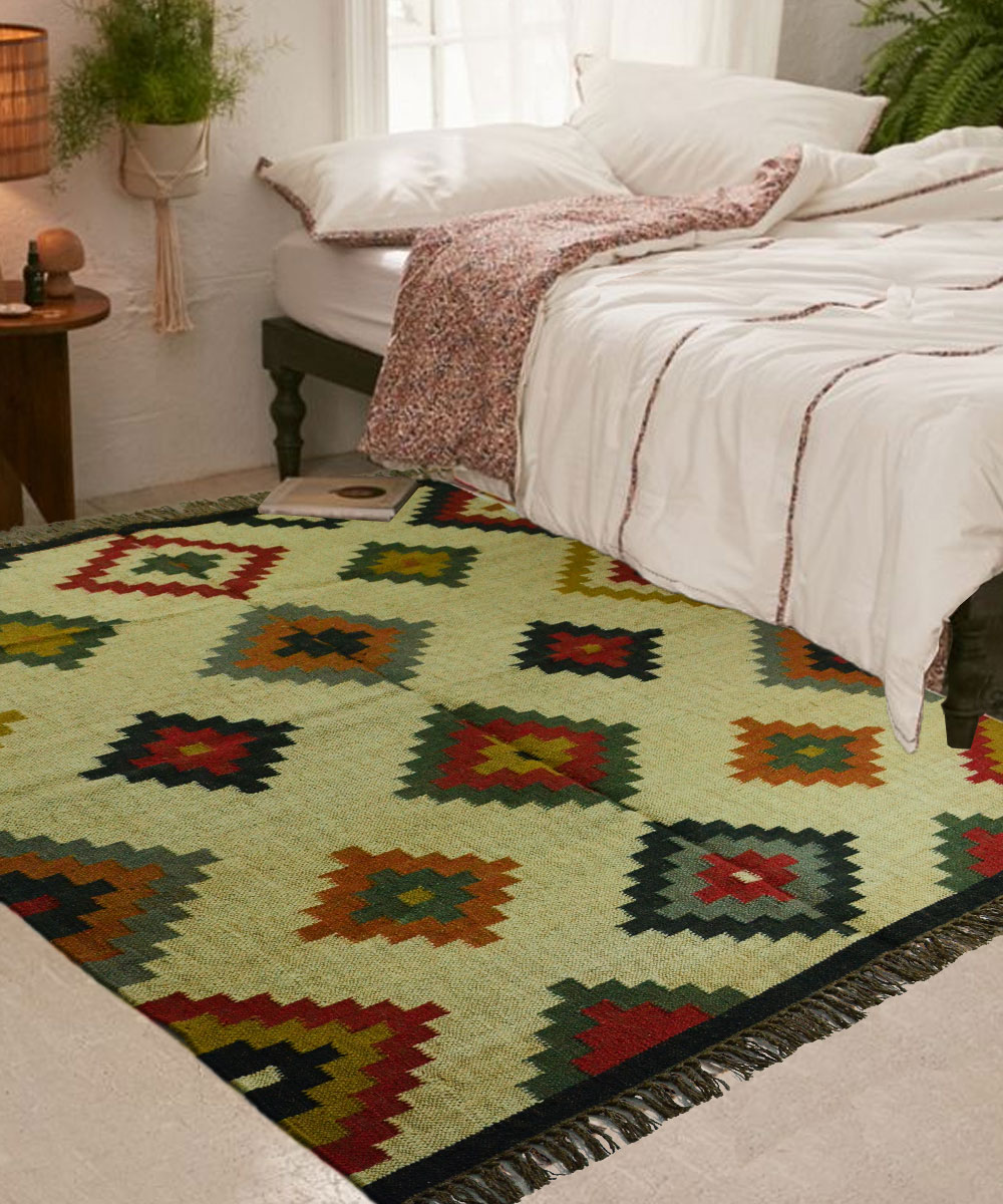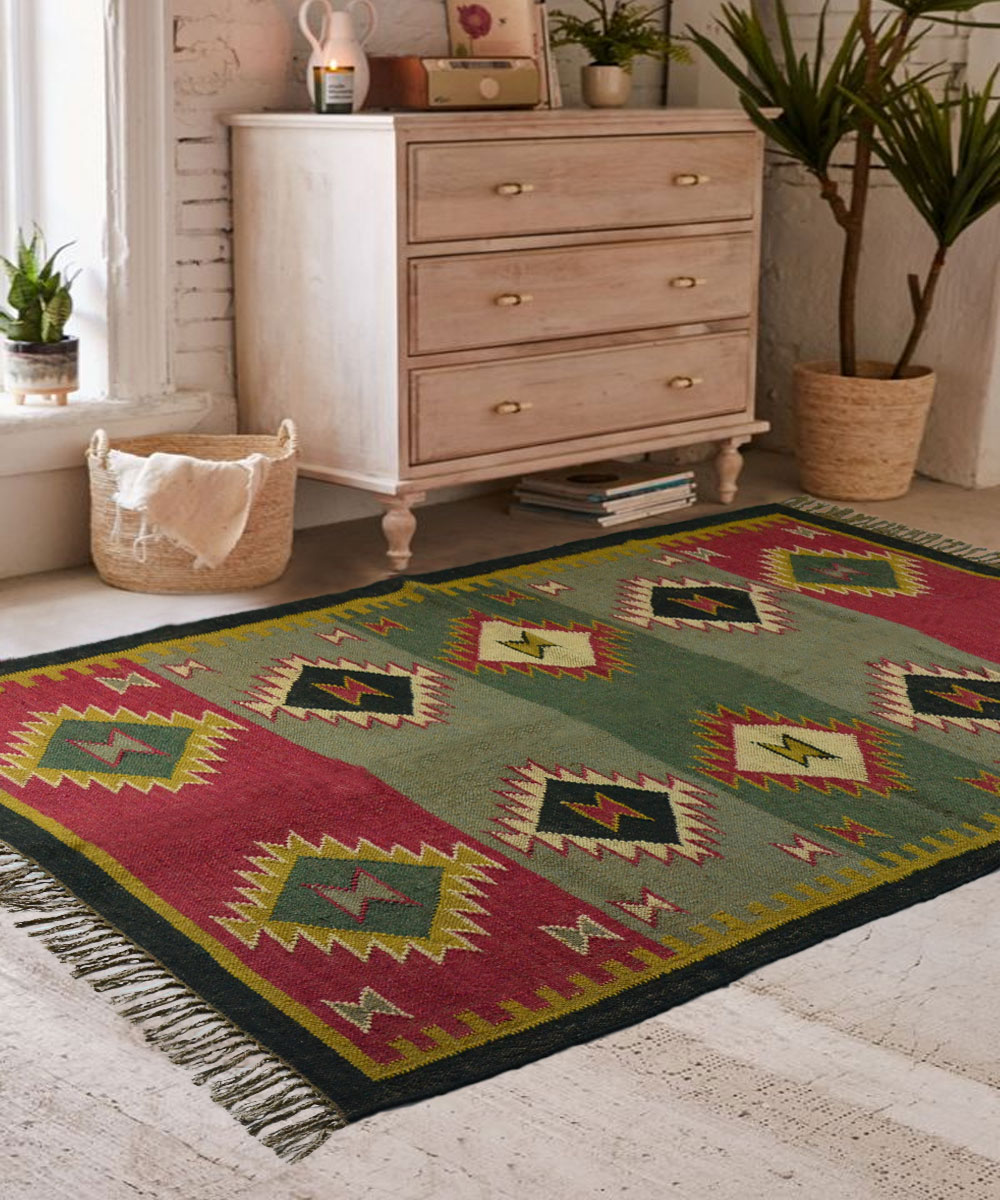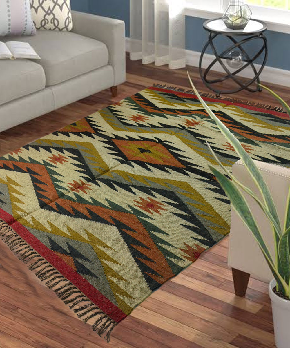 Multicolored Southwestern Hand Woven Kilim Rugs Jute Area Rug 4 x 6 Ft
