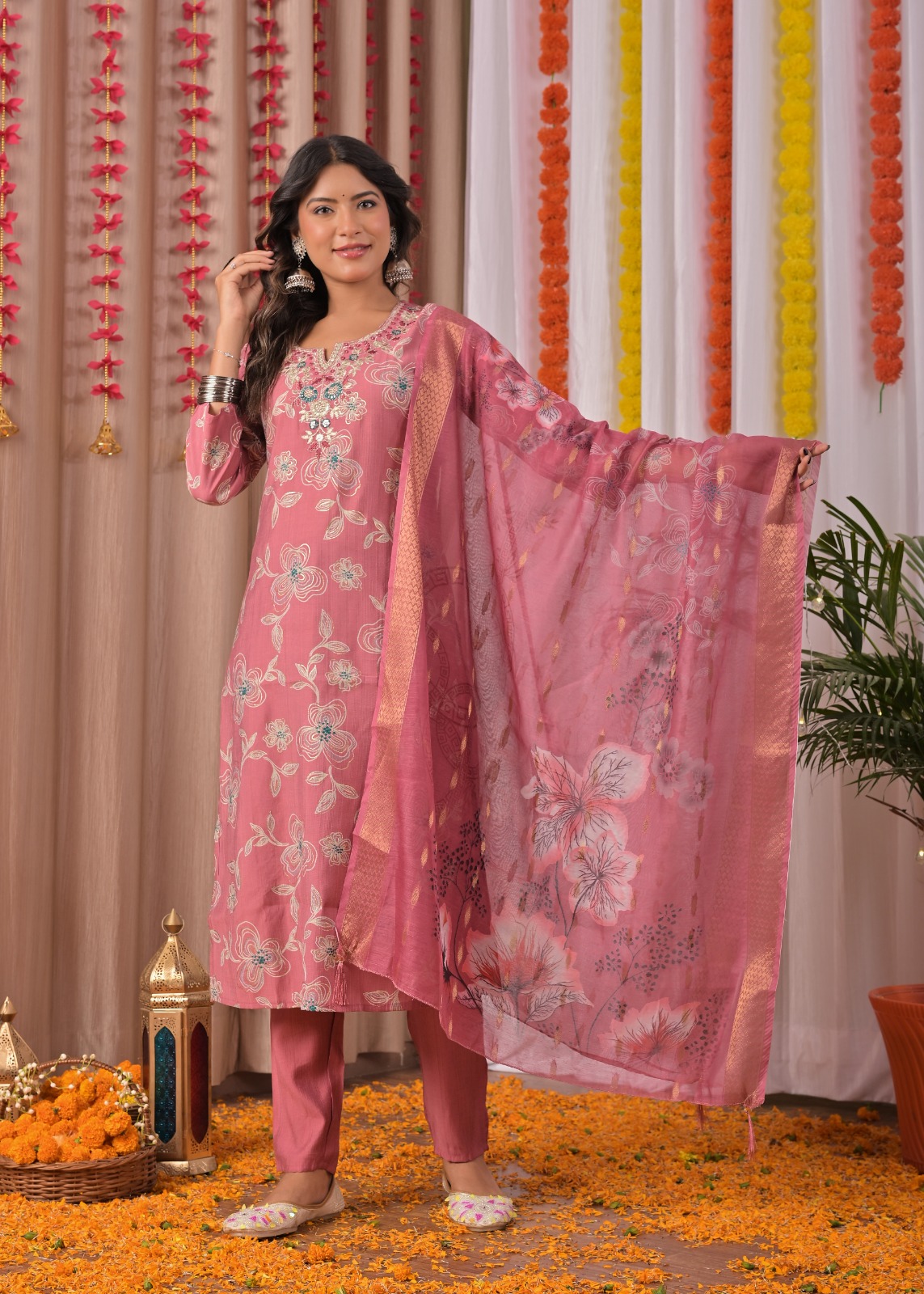 Embrace elegance with this Pastel Pink Indian Traditional Readymade Straight Embroidered Salwar Kameez Set. Crafted from soft, breathable fabric, the kurti features delicate embroidery that enhances its graceful charm. Paired with matching pants and a beautifully coordinated dupatta, this set ensures a refined and stylish ethnic look. Perfect for festive occasions, family gatherings, or casual celebrations, it offers both comfort and sophistication in one timeless ensemble. A must-have addition to your ethnic wear collection.