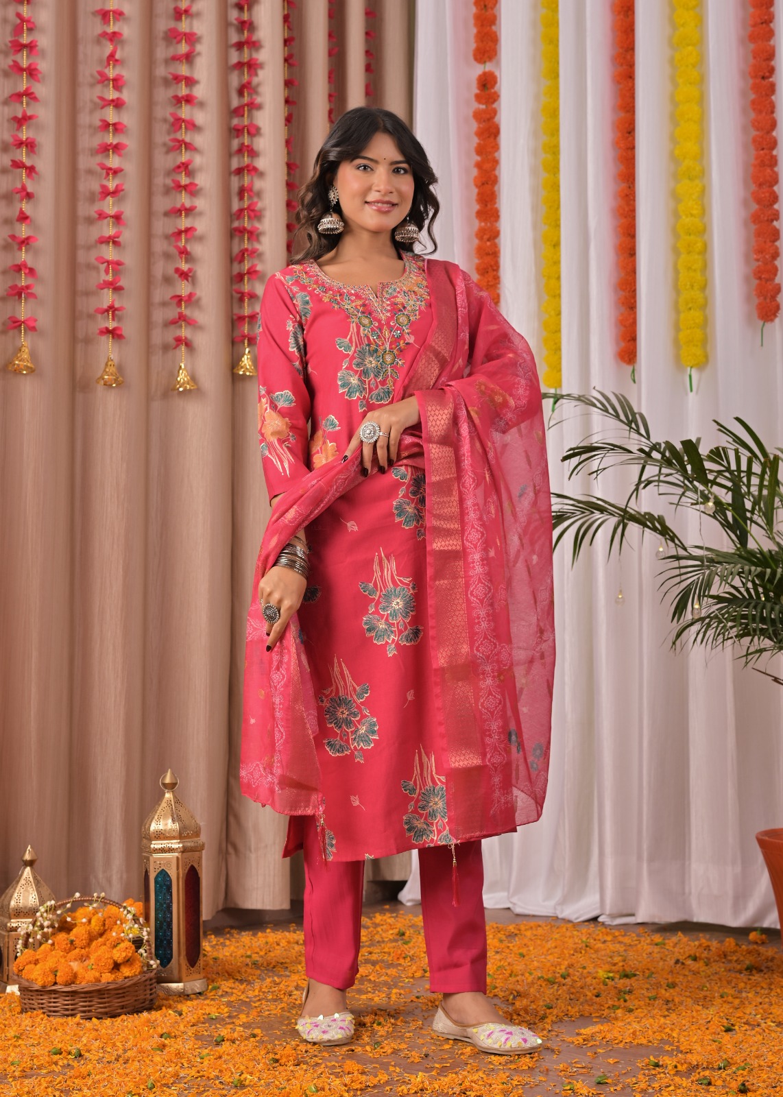 Embrace elegance with this Rani Pink Indian Traditional Readymade Straight Embroidered Salwar Kameez Set. Crafted from soft, breathable fabric, the kurti features delicate embroidery that enhances its graceful charm. Paired with matching pants and a beautifully coordinated dupatta, this set ensures a refined and stylish ethnic look. Perfect for festive occasions, family gatherings, or casual celebrations, it offers both comfort and sophistication in one timeless ensemble. A must-have addition to your ethnic wear collection.