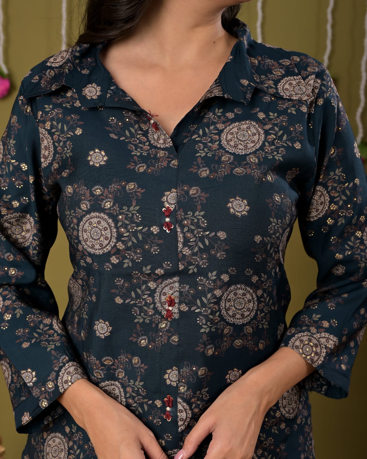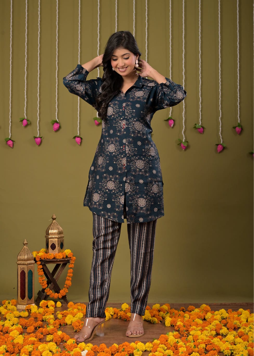 Elevate your ethnic style with this Maroon Floral Printed Muslin Kurti Pant Co-Ord Set for Women. Crafted from soft, breathable muslin fabric, it offers a perfect blend of comfort and elegance. The vibrant floral print adds a touch of sophistication, while the one-side pocket brings functionality and charm. Ideal for festive occasions or casual outings, this set ensures a graceful and effortlessly stylish look all day.