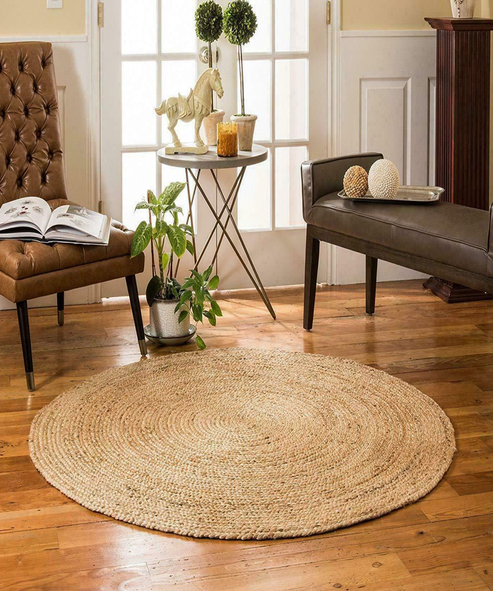 Small Handmade Reversible Natural Jute Braided Round Area Rug - 24 Inch
