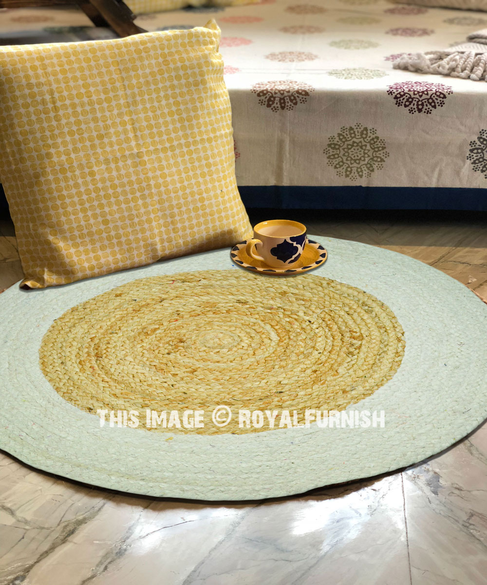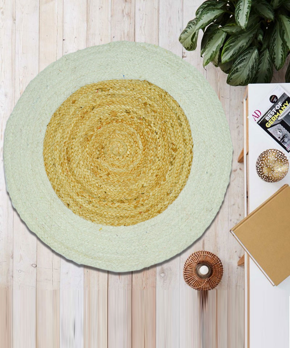 Natural Jute & Ivory Mix Handmade Braided Aesthetic Round Rugs - 24 Inch