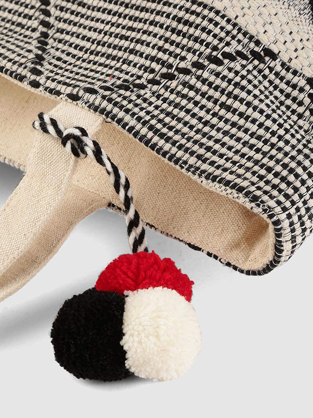 It's a medium size bag and has detachable Tri-Colour POM POM. Looks stylish & classy.