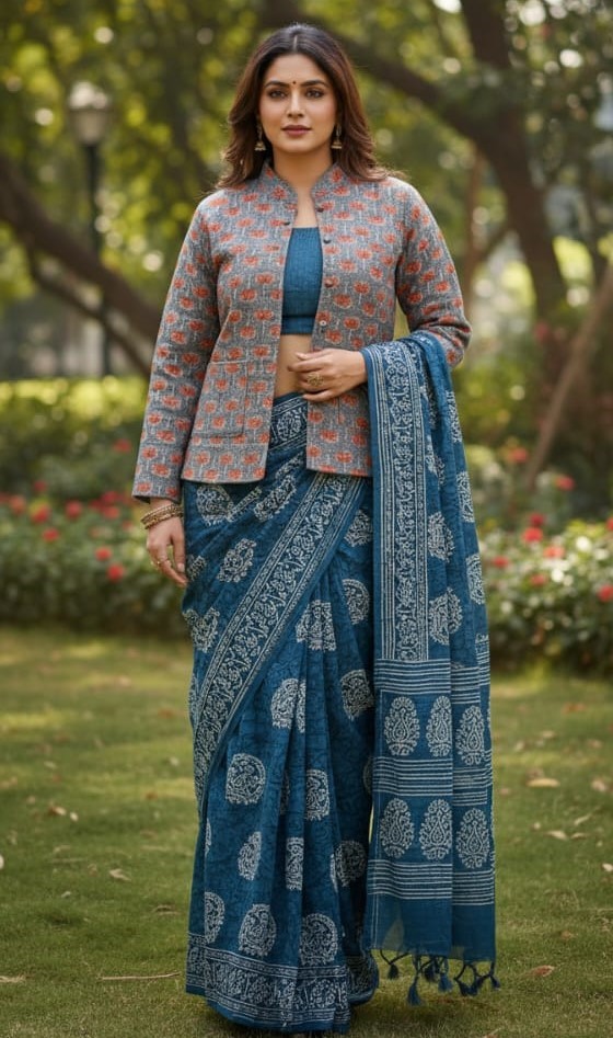 Elevate your ethnic style with this Teal Floral Printed Reversible Quilted Kantha Jacket. Crafted from soft, breathable cotton, it features intricate hand block prints and fine kantha stitching. The dual-side reversible design offers two stylish looks in one-perfect for layering over kurtas or dresses. Full Sleeves and lightweight, this jacket blends traditional craftsmanship with modern versatility, ideal for year-round wear.