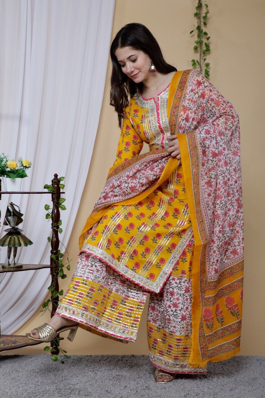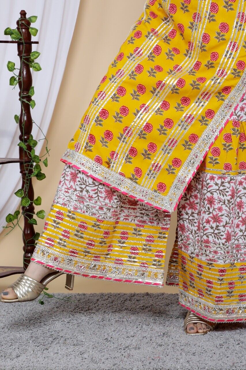 Yellow Pakistani Readymade Salwar Kameez Set Indian Designer Palazzo Sharara Suit Top