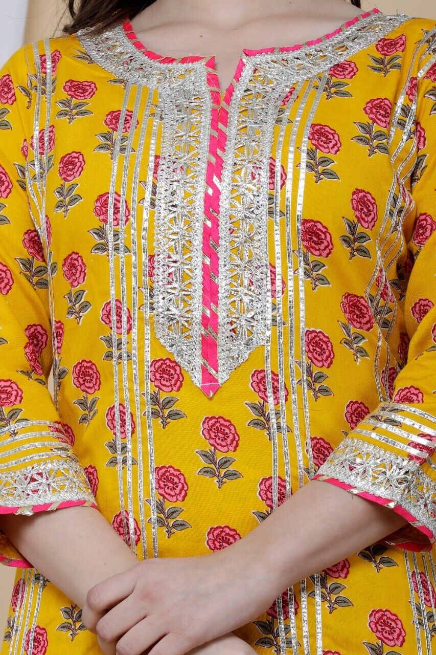 • Work: Heavy Gota Work on Kurti Sharara and Dupatta