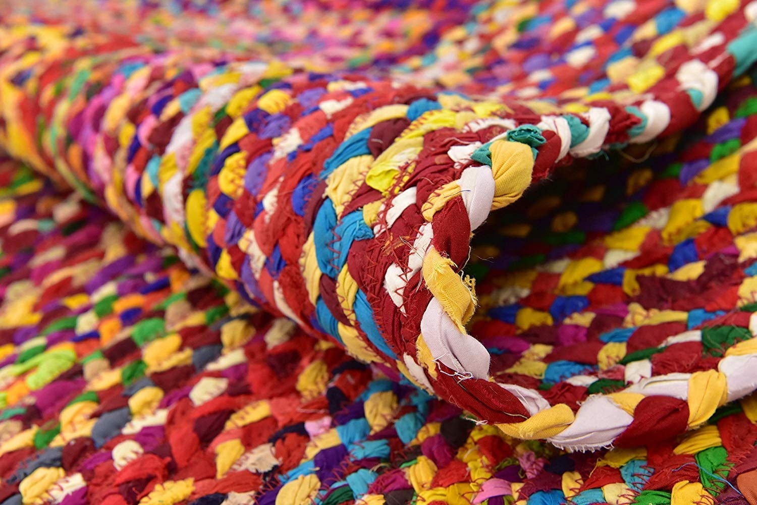 Boho Chindi Cotton Braided Area Rugs Colorful Hand Woven Reversible Rug - 4x6 Ft