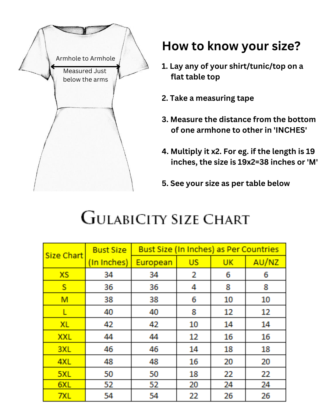 • Size: S-36, M-38, L-40, XL-42, 2XL-44,3XL-46,4XL-48