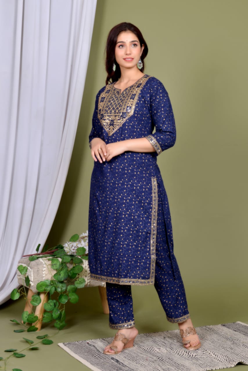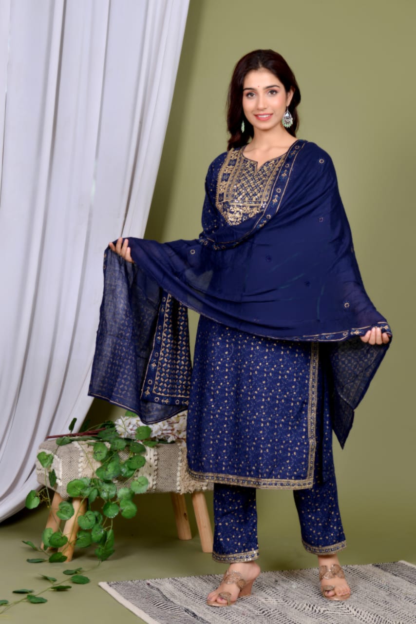 Blue Indian Pakistani Readymade Salwar Kameez Dupatta Kurti Pant Set Ethnic Embroidered Dress