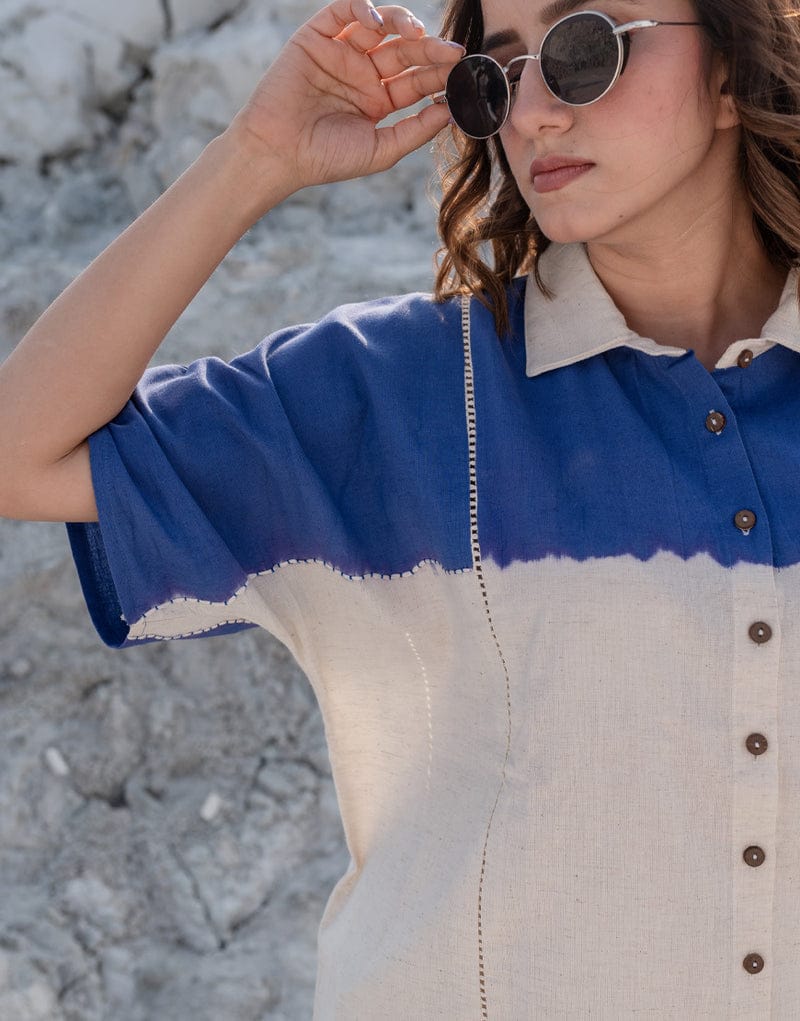 Blue Tye Dye Cotton Kurti Pant Summer Co Ord Set for Women Set of 2