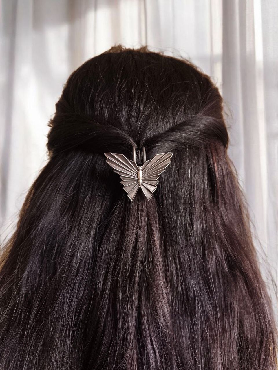 Butterfly Designer Silver Oxidized Hair Pin Accessory Stylish Hair Jewellery Gift for Her