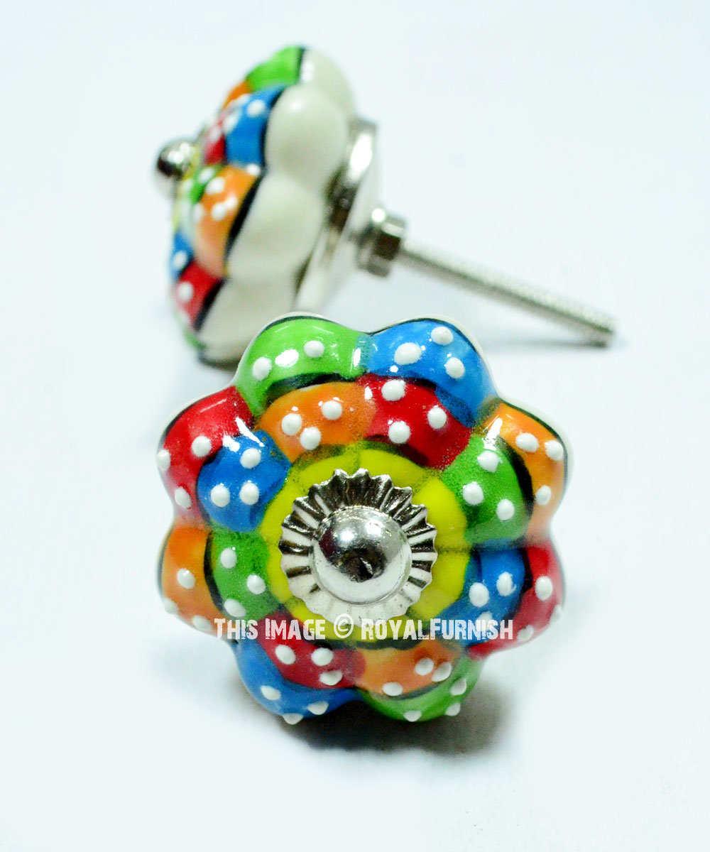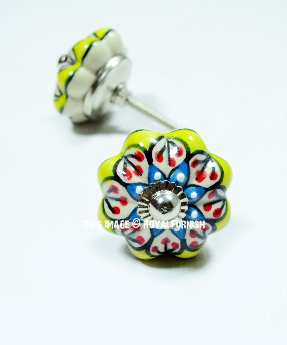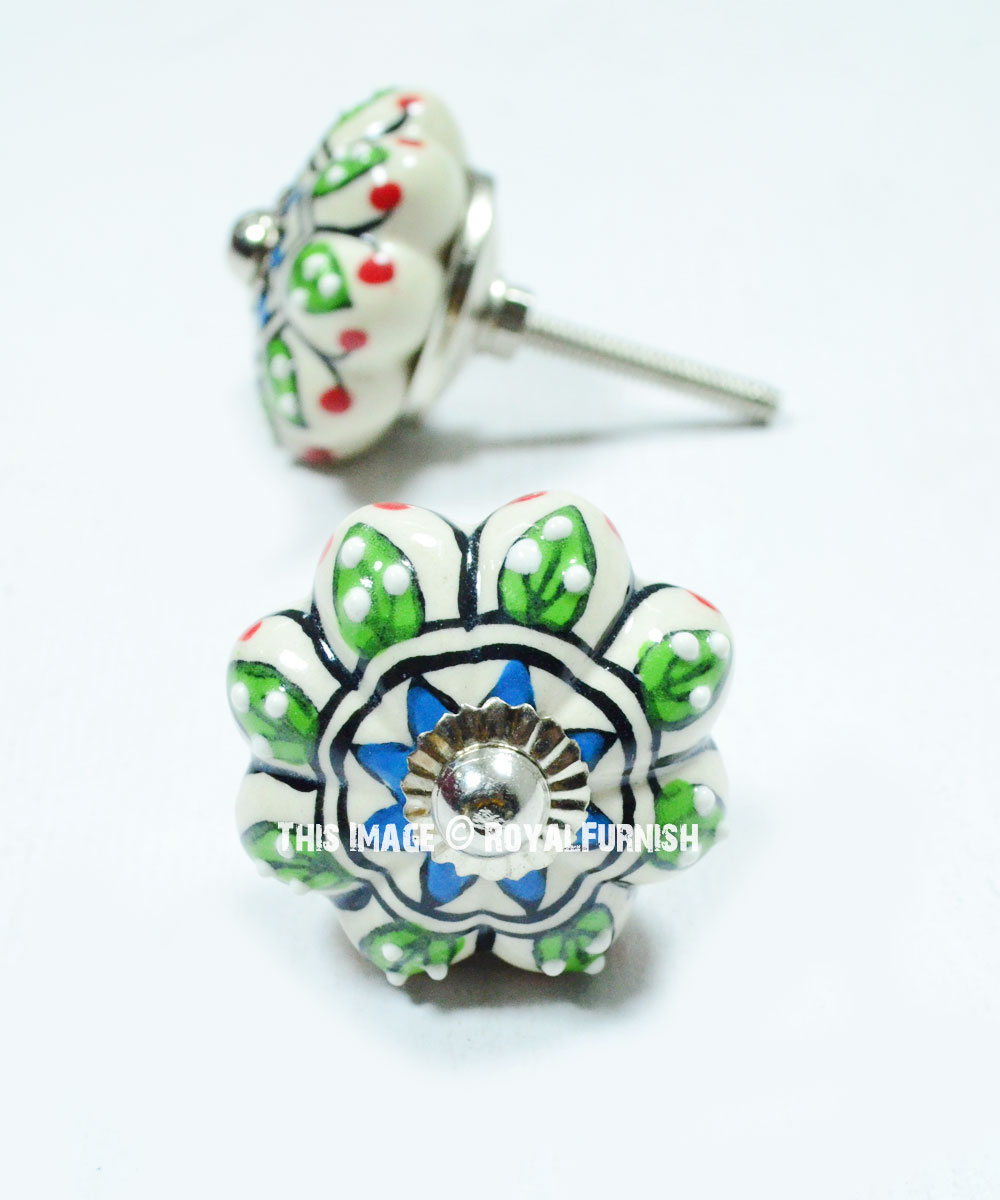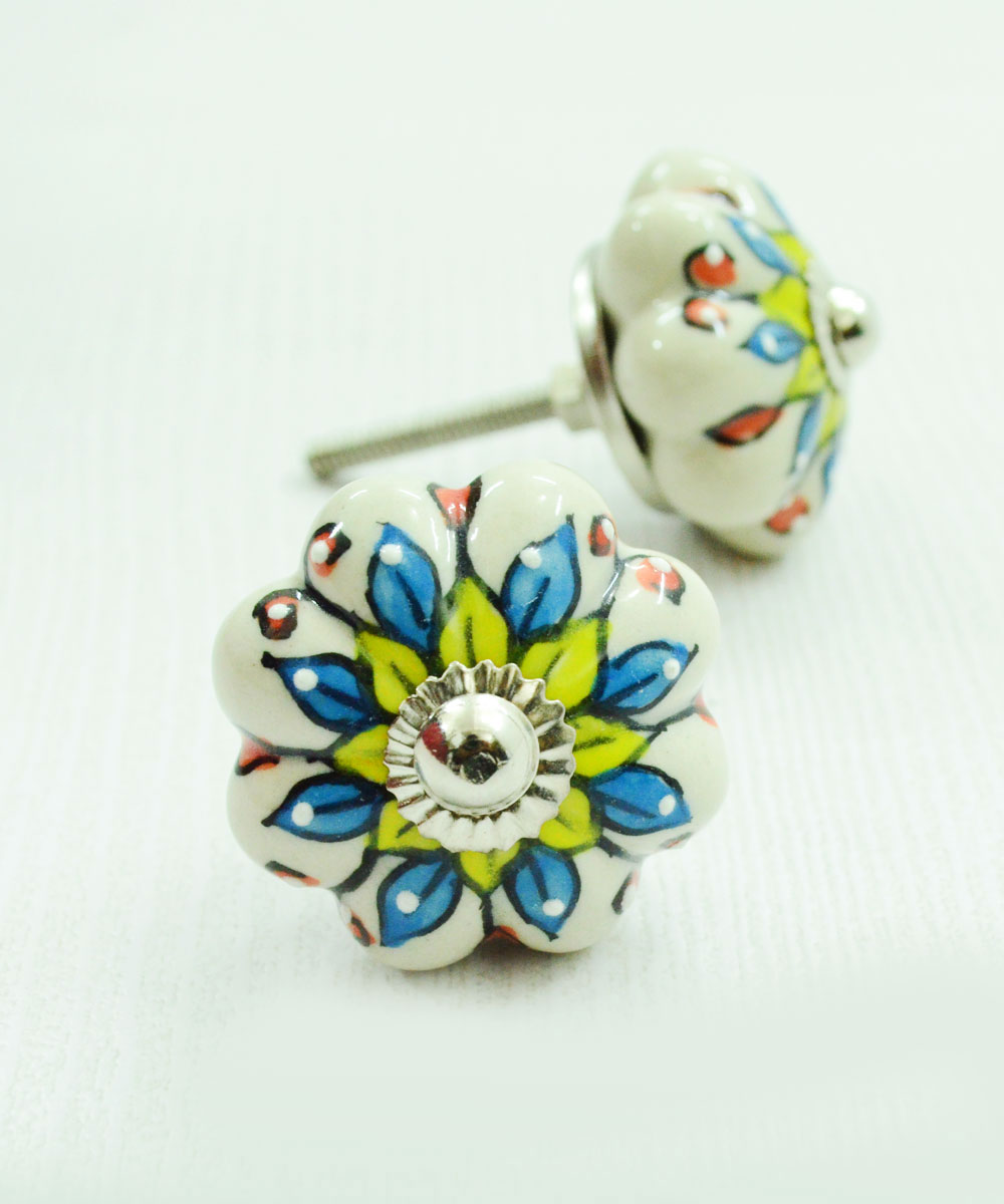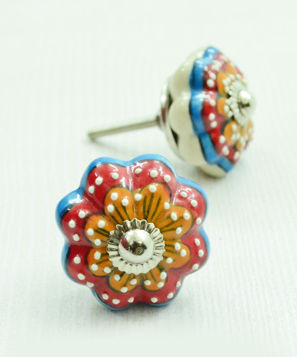 Give a finishing touch to your DIY project with Indian Ceramic knobs to remodeled kitchen, bathroom on dresser and closets. Made of Ceramic and metal with colorful floral design. It is handcrafted item, made in India with love.
