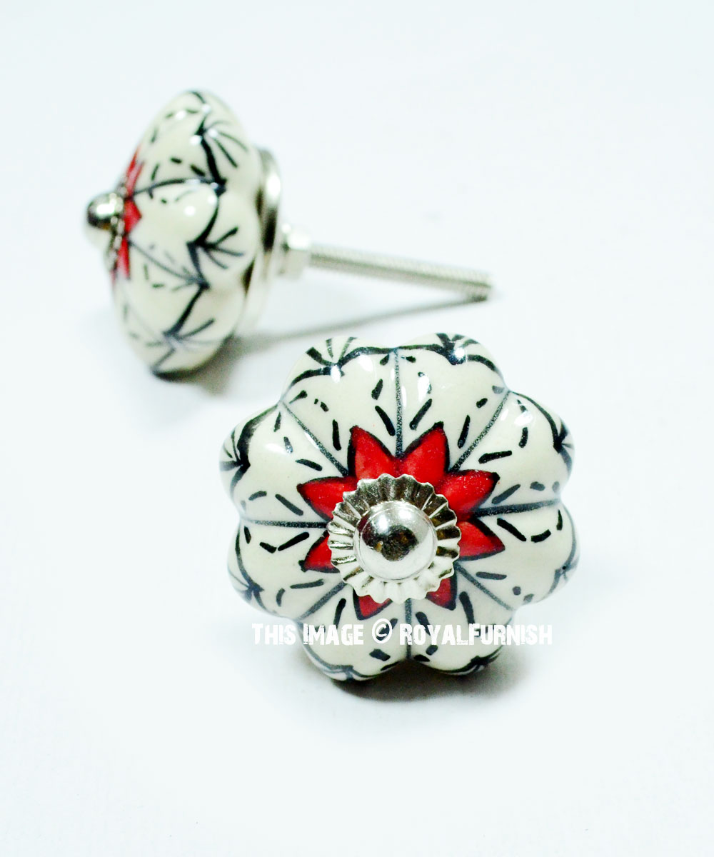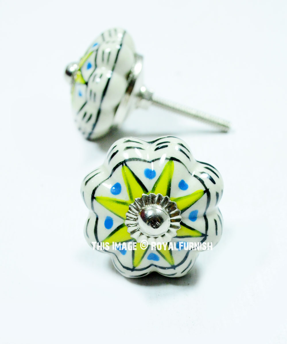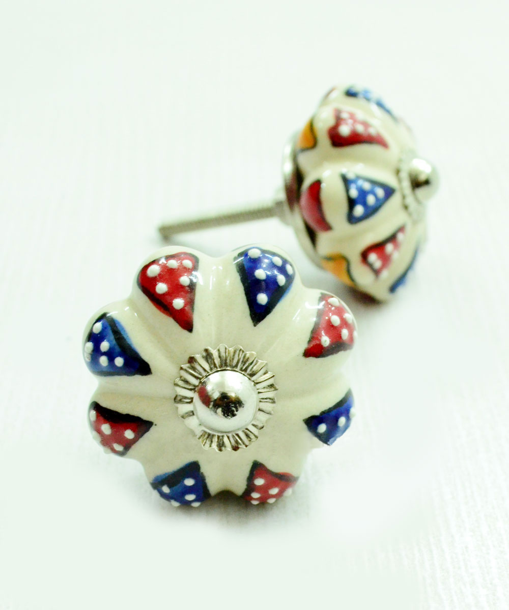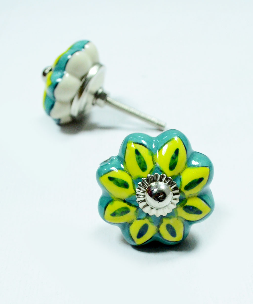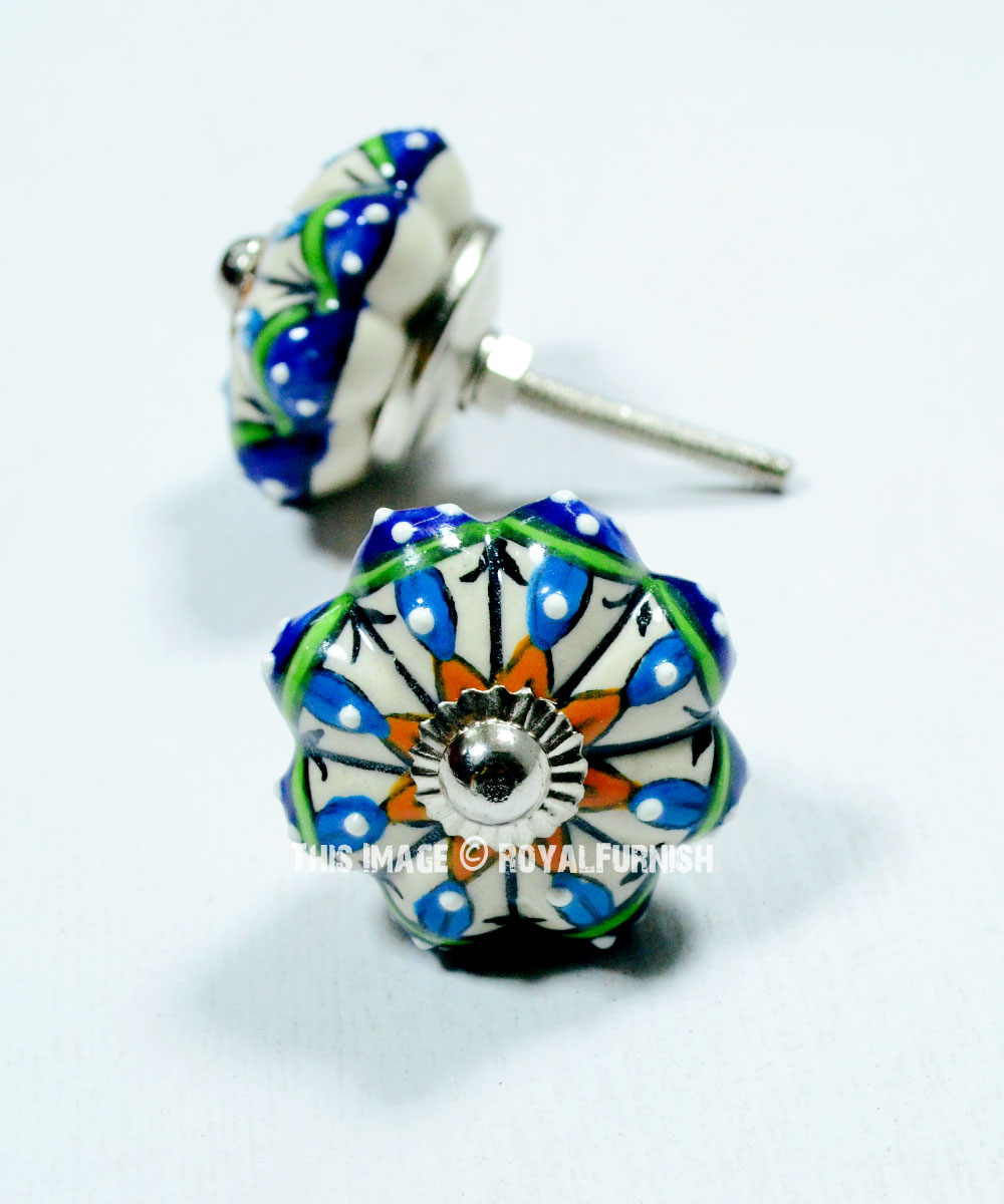 Give a finishing touch to your DIY project with Indian Ceramic knobs to remodeled kitchen, bathroom on dresser and closets. Made of Ceramic and metal with colorful floral design. It is handcrafted item, made in India with love.