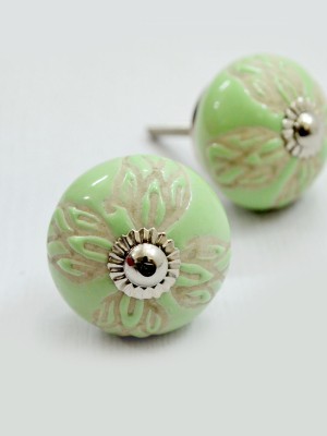 Design 10 Green Shabby Chic Decorative Indian Glossy Ceramic Cabinet Knob Set of Two