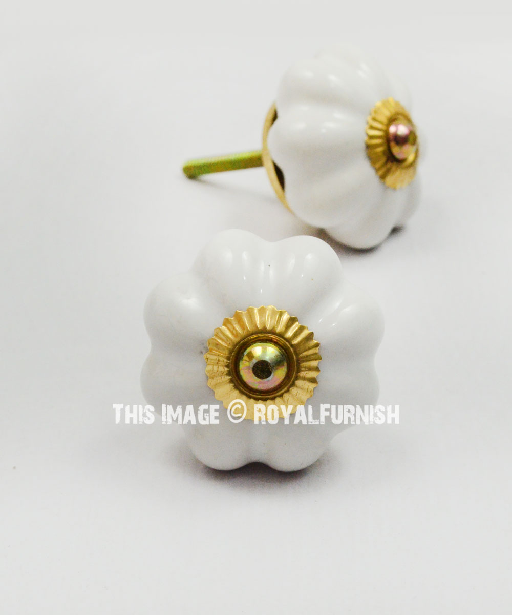White Solid Flower Shaped Decorative Glossy Ceramic Cabinet Knob Set of Two