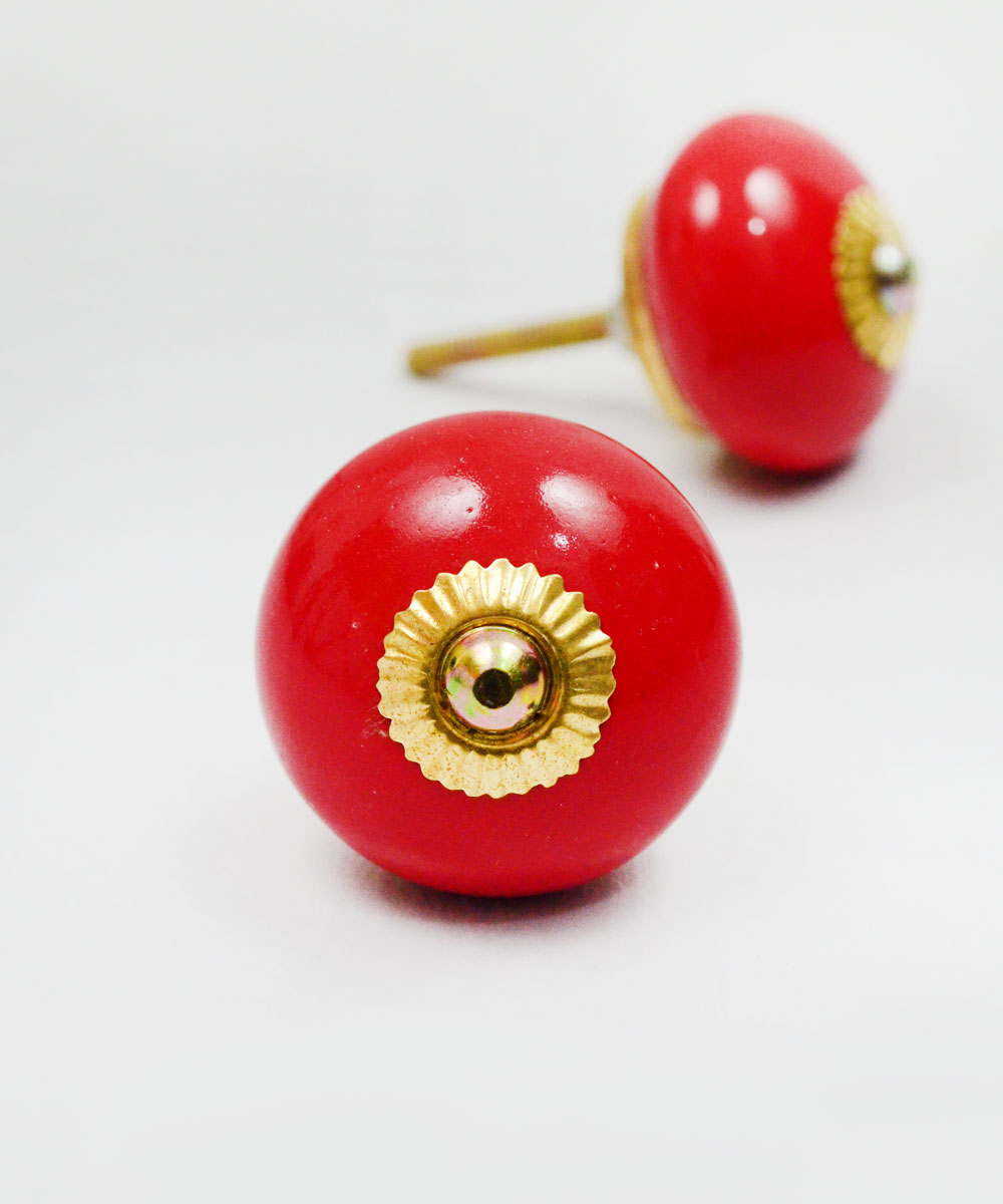 Red Solid Round Shabby Chic Decorative Kitchen Cabinet Dresser Ceramic Knob Set of 2