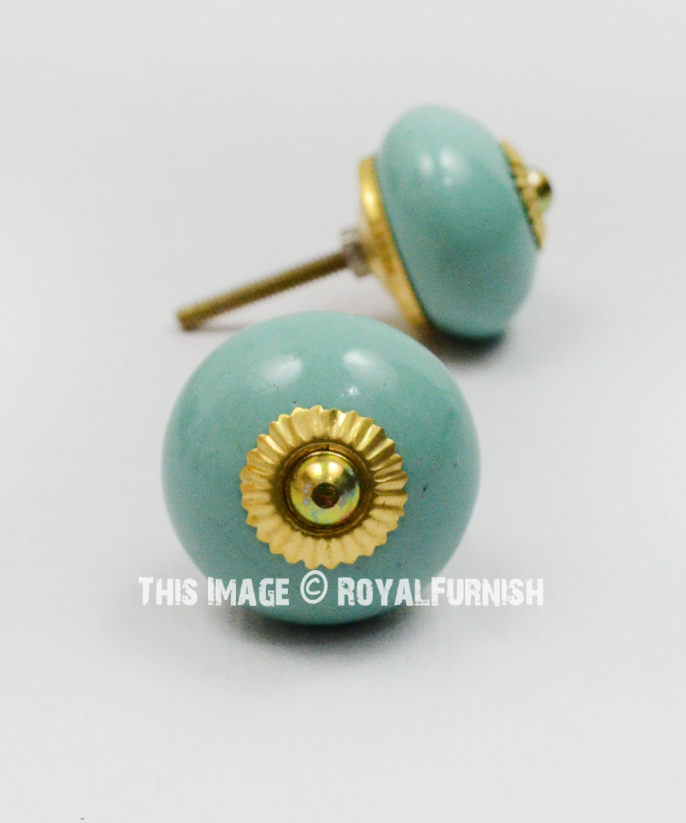 Teal Solid Round Shabby Chic Decorative Kitchen Cabinet Dresser Ceramic Knob Set of 2