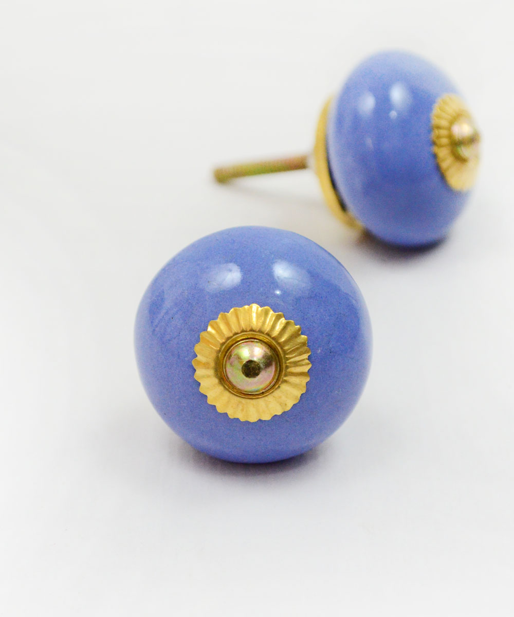 Blue Solid Round Shabby Chic Decorative Kitchen Cabinet Dresser Ceramic Knob Set of 2