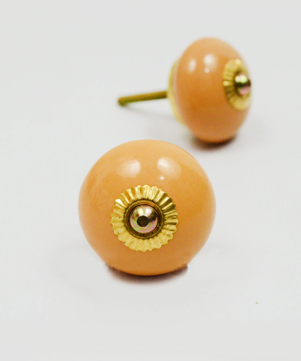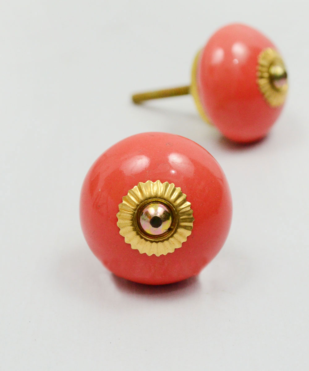 Orange Solid Round Shabby Chic Decorative Kitchen Cabinet Dresser Ceramic Knob Set of 2