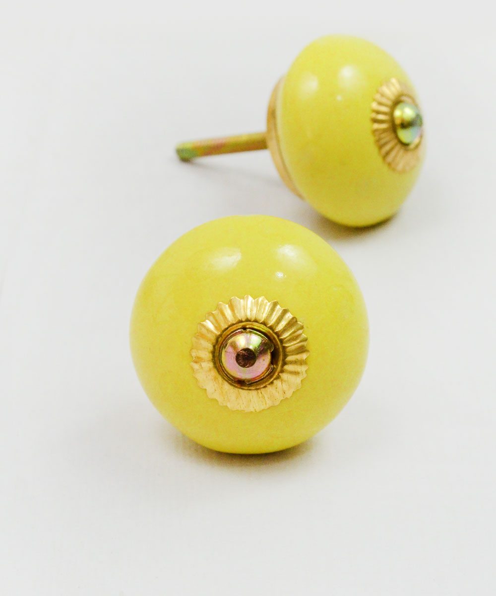 Mustard Solid Round Shabby Chic Decorative Kitchen Cabinet Dresser Ceramic Knob Set of 2