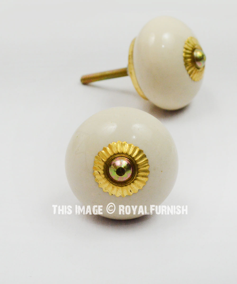 Beige Solid Round Shabby Chic Decorative Kitchen Cabinet Dresser Ceramic Knob Set of 2