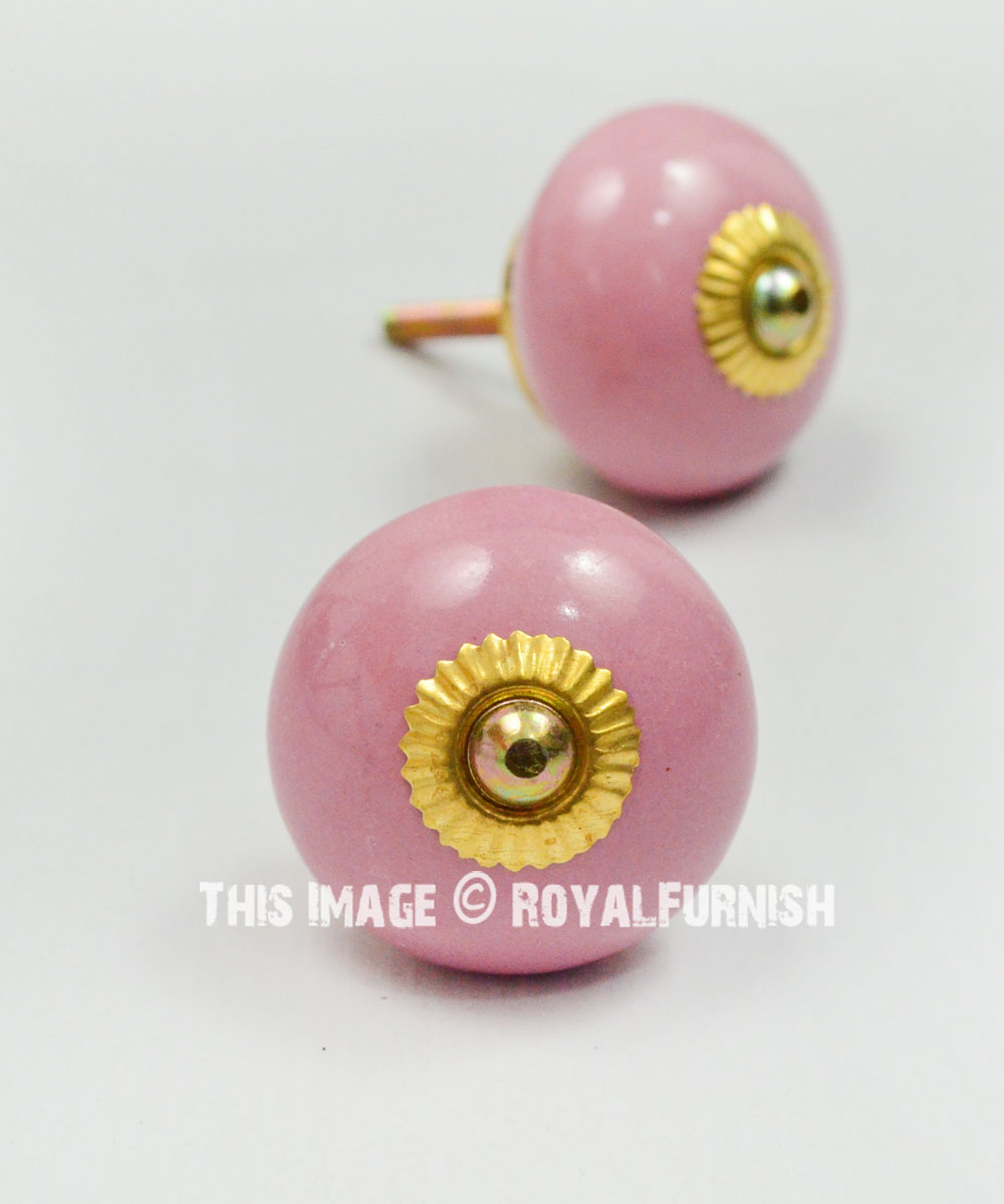 Pink Solid Round Shabby Chic Decorative Kitchen Cabinet Dresser Ceramic Knob Set of 2