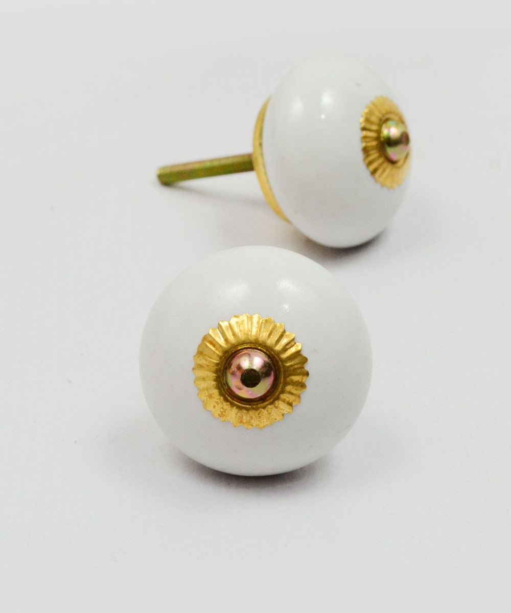 White Solid Round Shabby Chic Decorative Kitchen Cabinet Dresser Ceramic Knob Set of 2