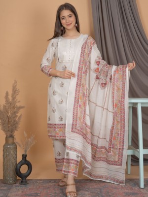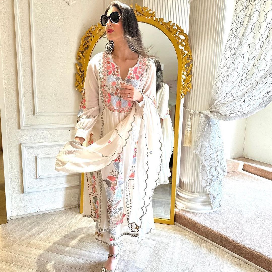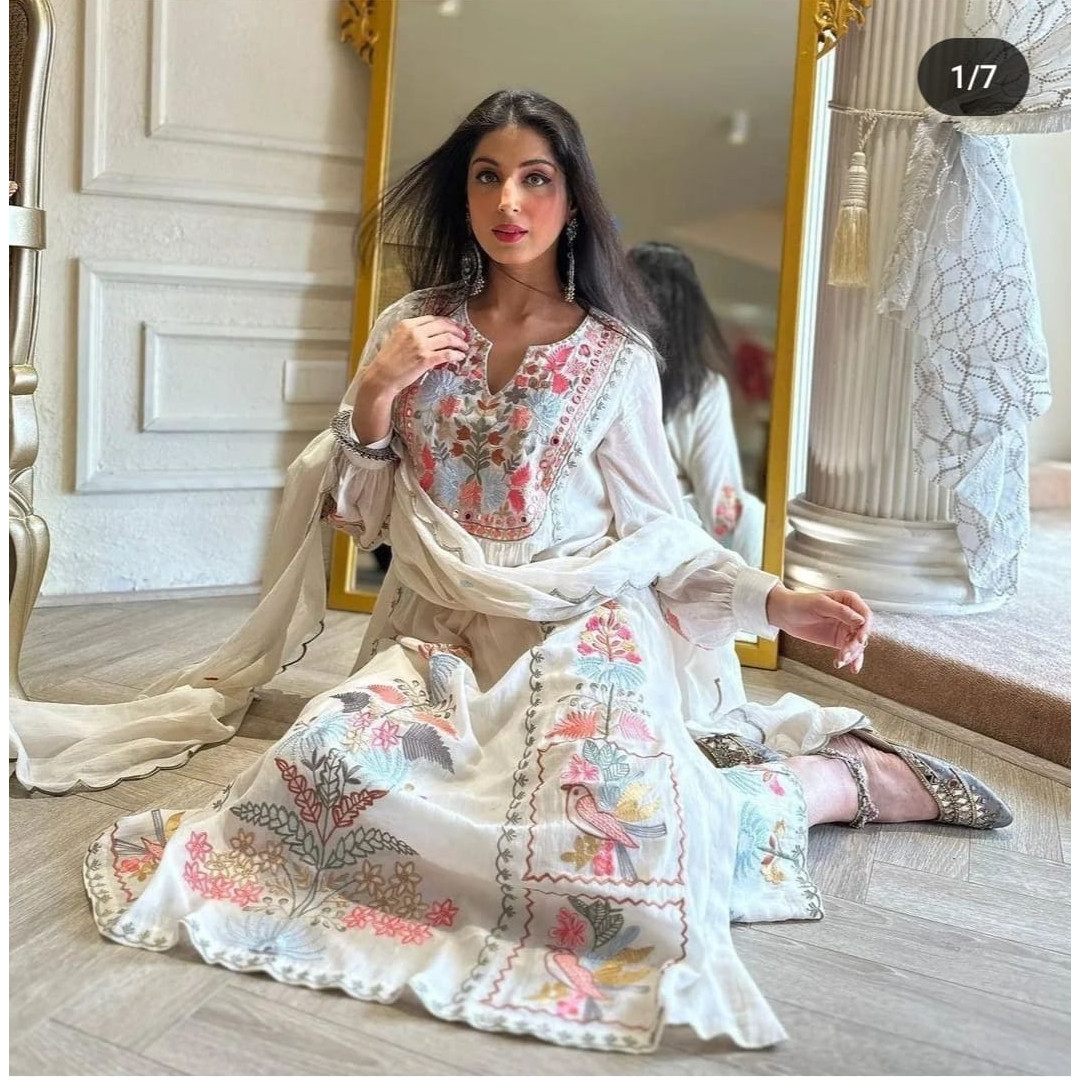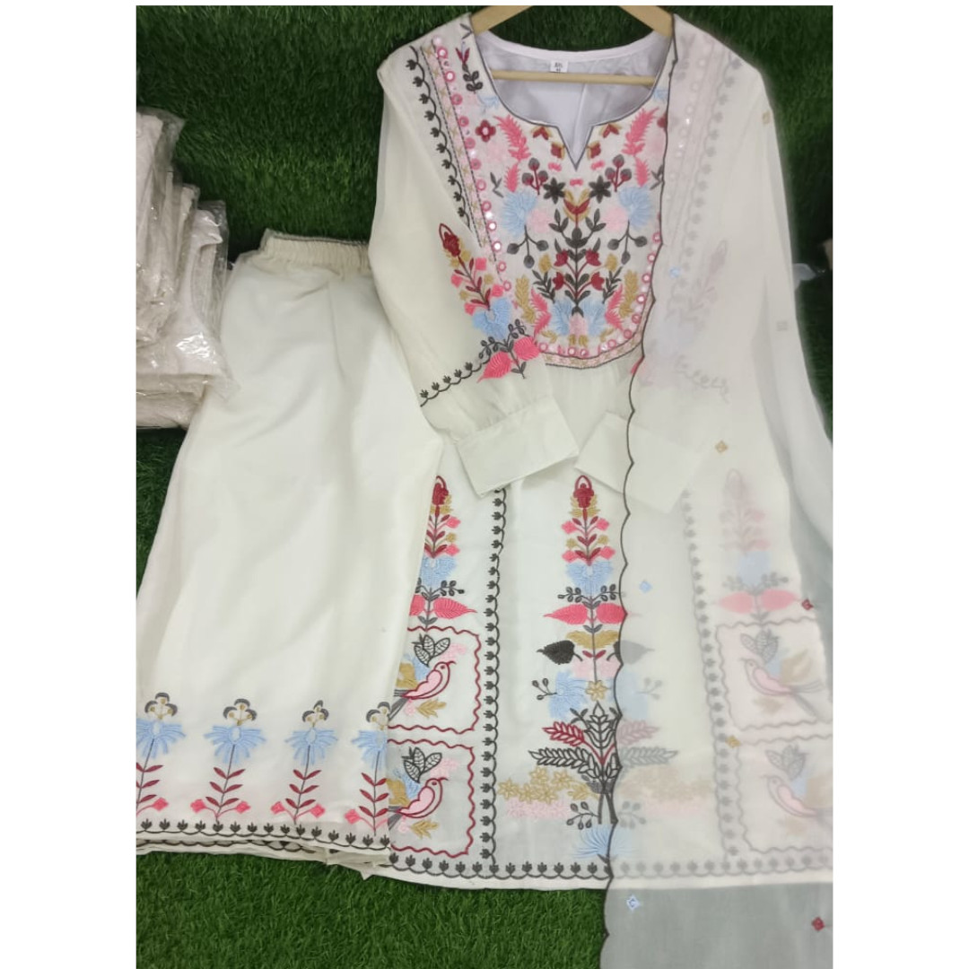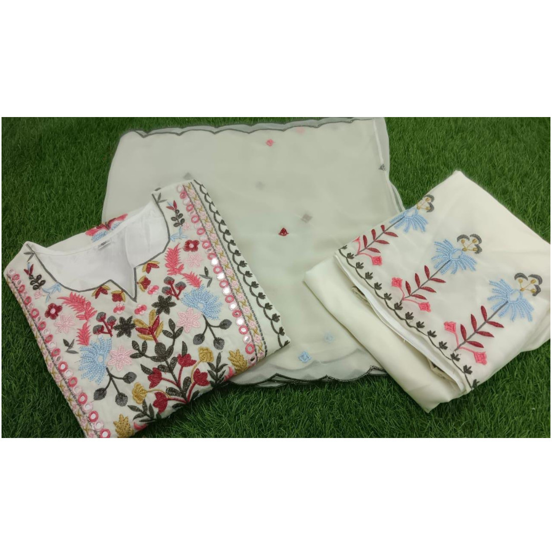 White Ivory Georgette Straight Festival Wear Salwar Kameez with Mirror Sequence and Embroidery Hand Work