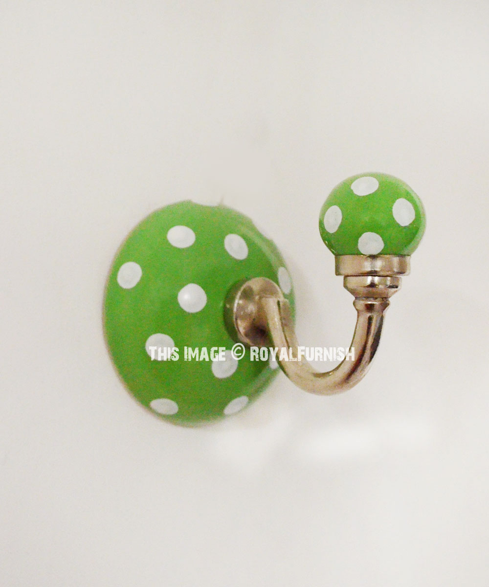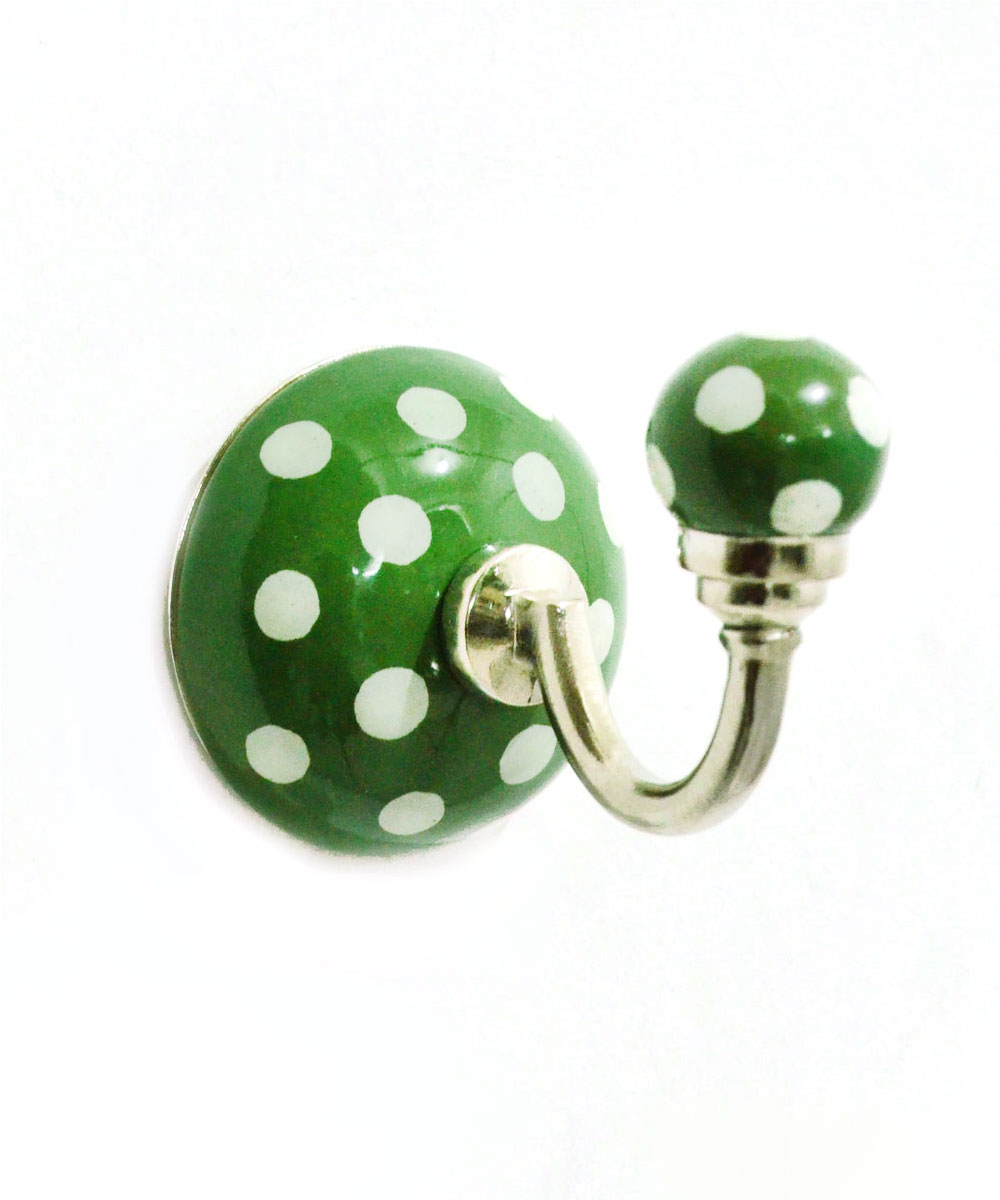 Green Unique Polka Dots Decorative Ceramic Wall Hook Coat Hanger Towel Hanger