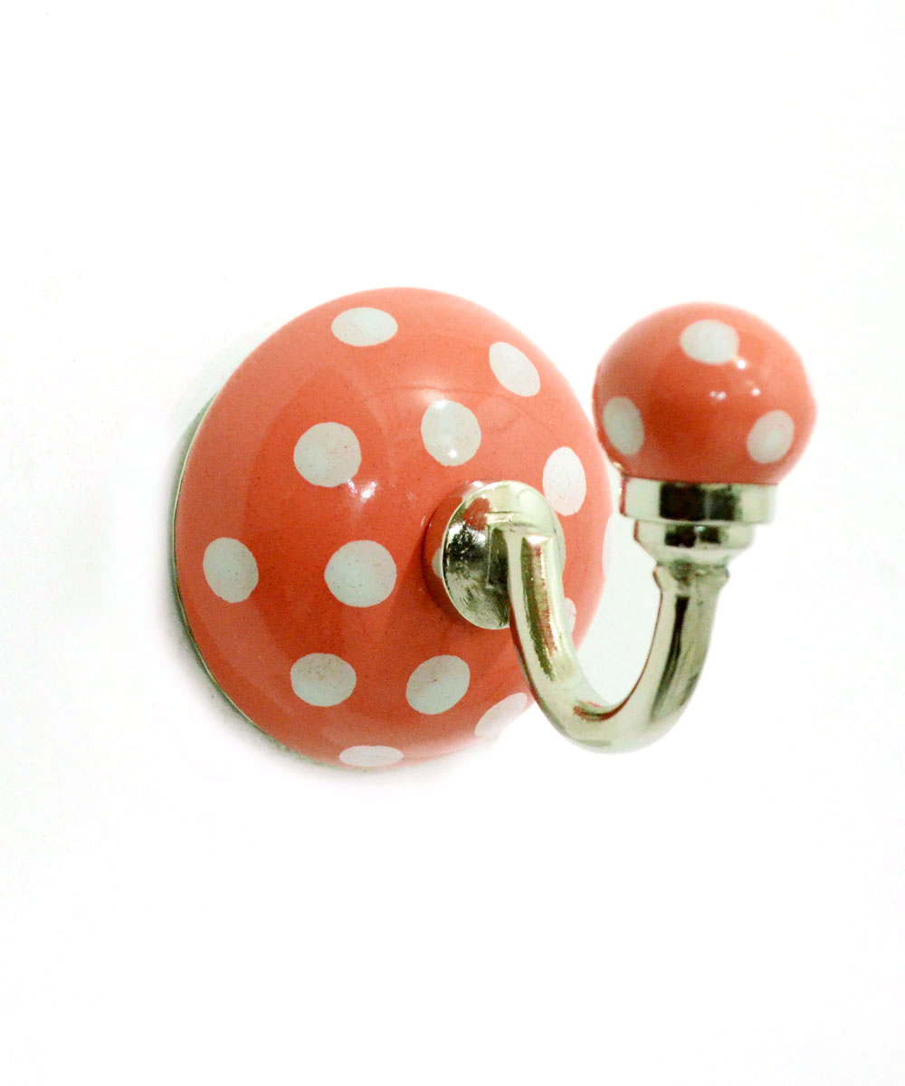Orange Unique Polka Dots Decorative Ceramic Wall Hook Coat Hanger Towel Hanger