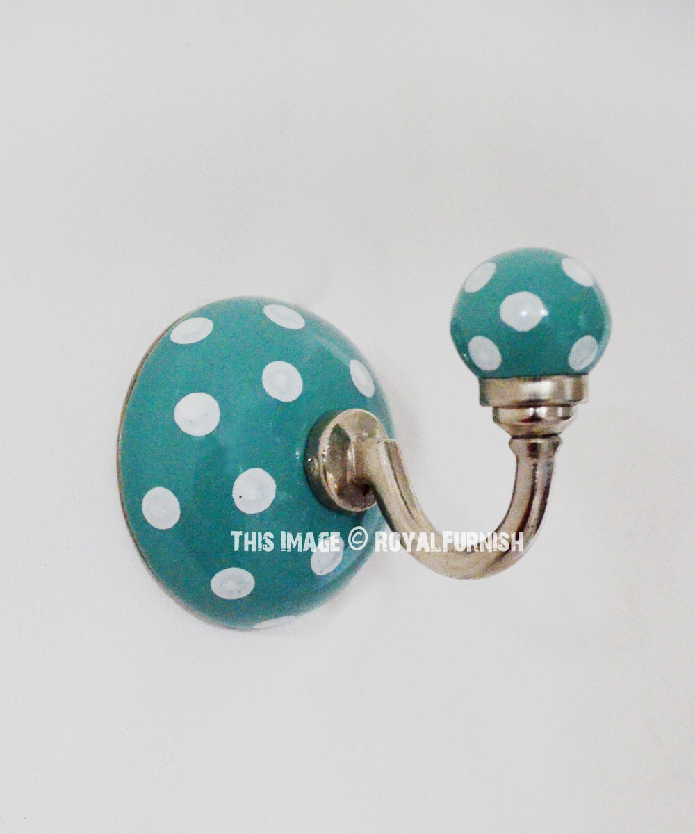 Teal Unique Polka Dots Decorative Ceramic Wall Hook Coat Hanger Towel Hanger