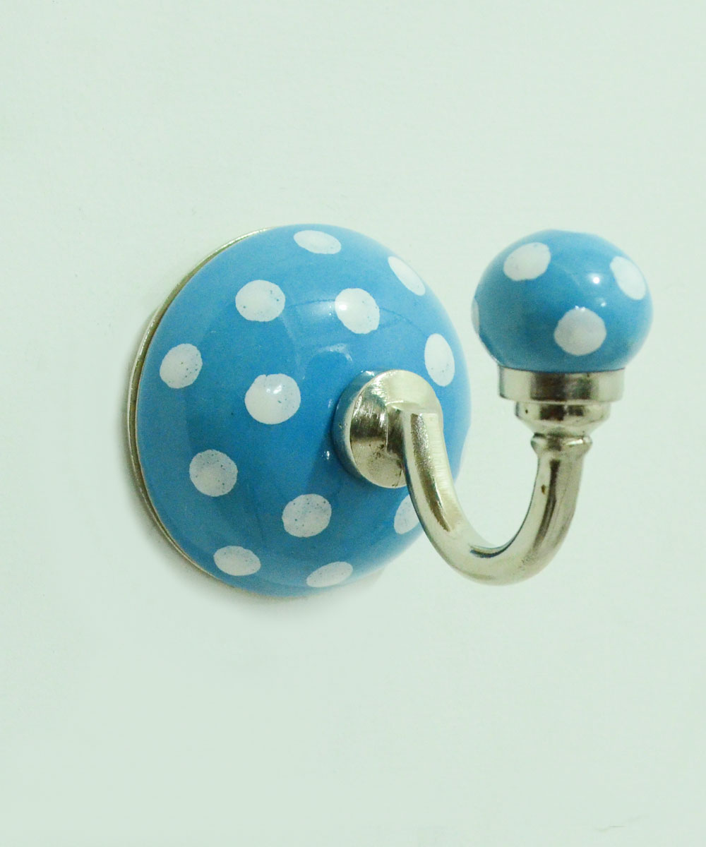 Turquoise Unique Polka Dots Decorative Ceramic Wall Hook Coat Hanger Towel Hanger