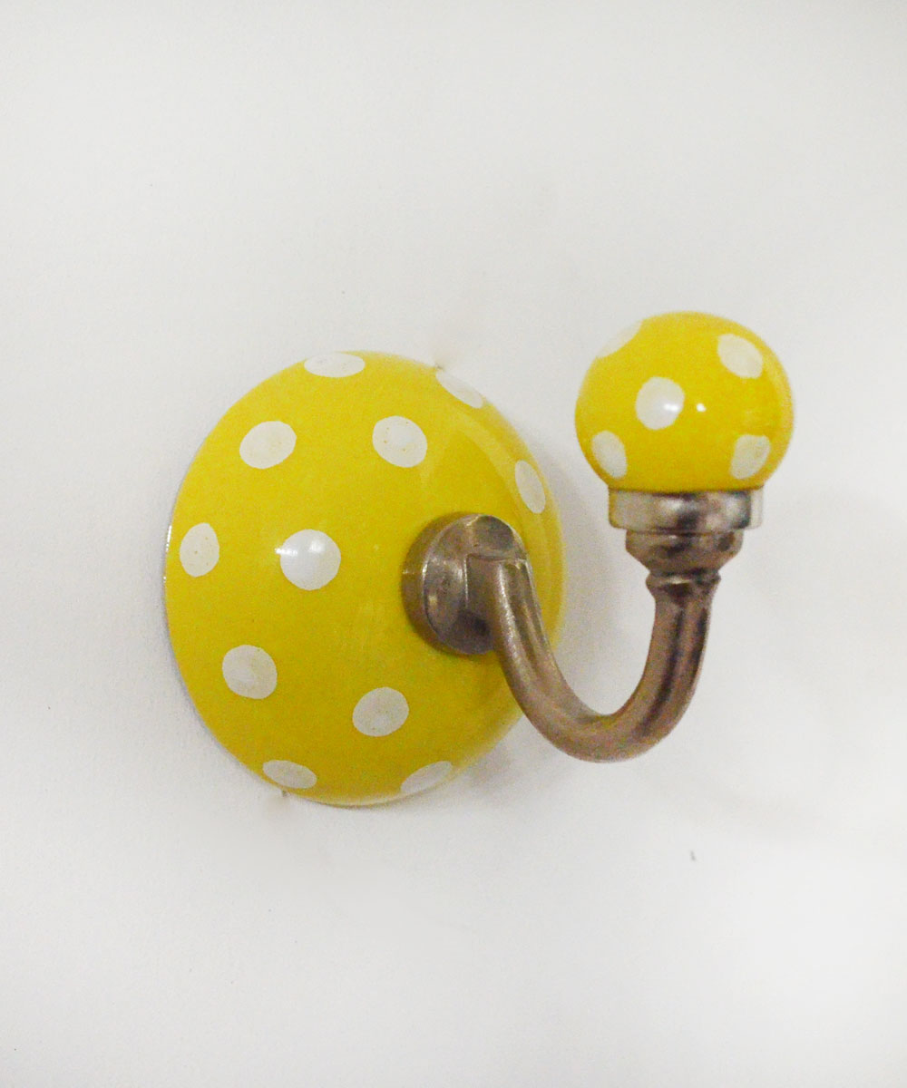 Yellow Unique Polka Dots Decorative Ceramic Wall Hook Coat Hanger Towel Hanger