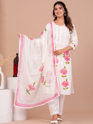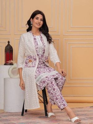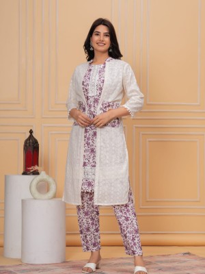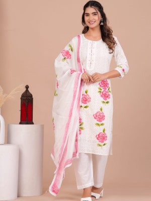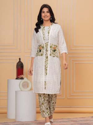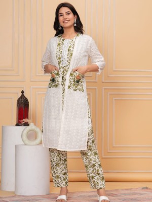 Readymade Pakistani Indian White Schiffli Co Ord Set Kurti Pant Cotton Salwar Kameez Set