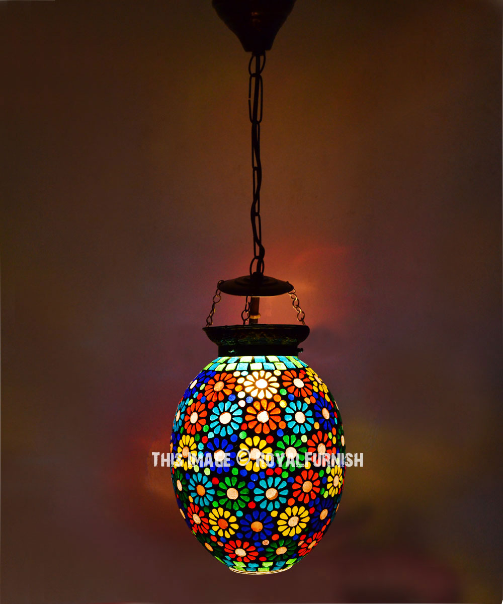 Multi Color Turkish Hanging Pendant Lamp Mosaic Glass Lantern Hanging Lamp