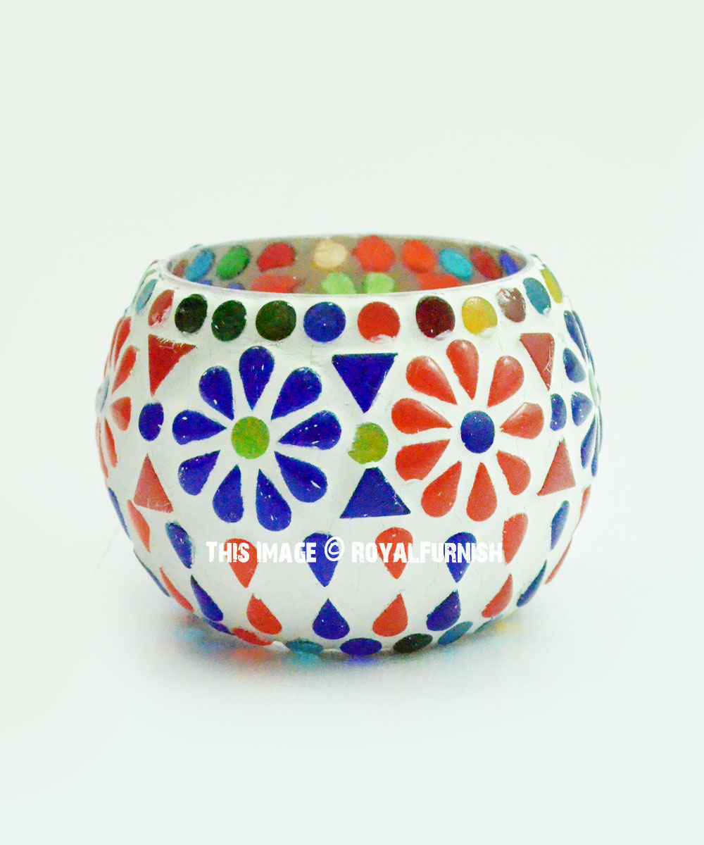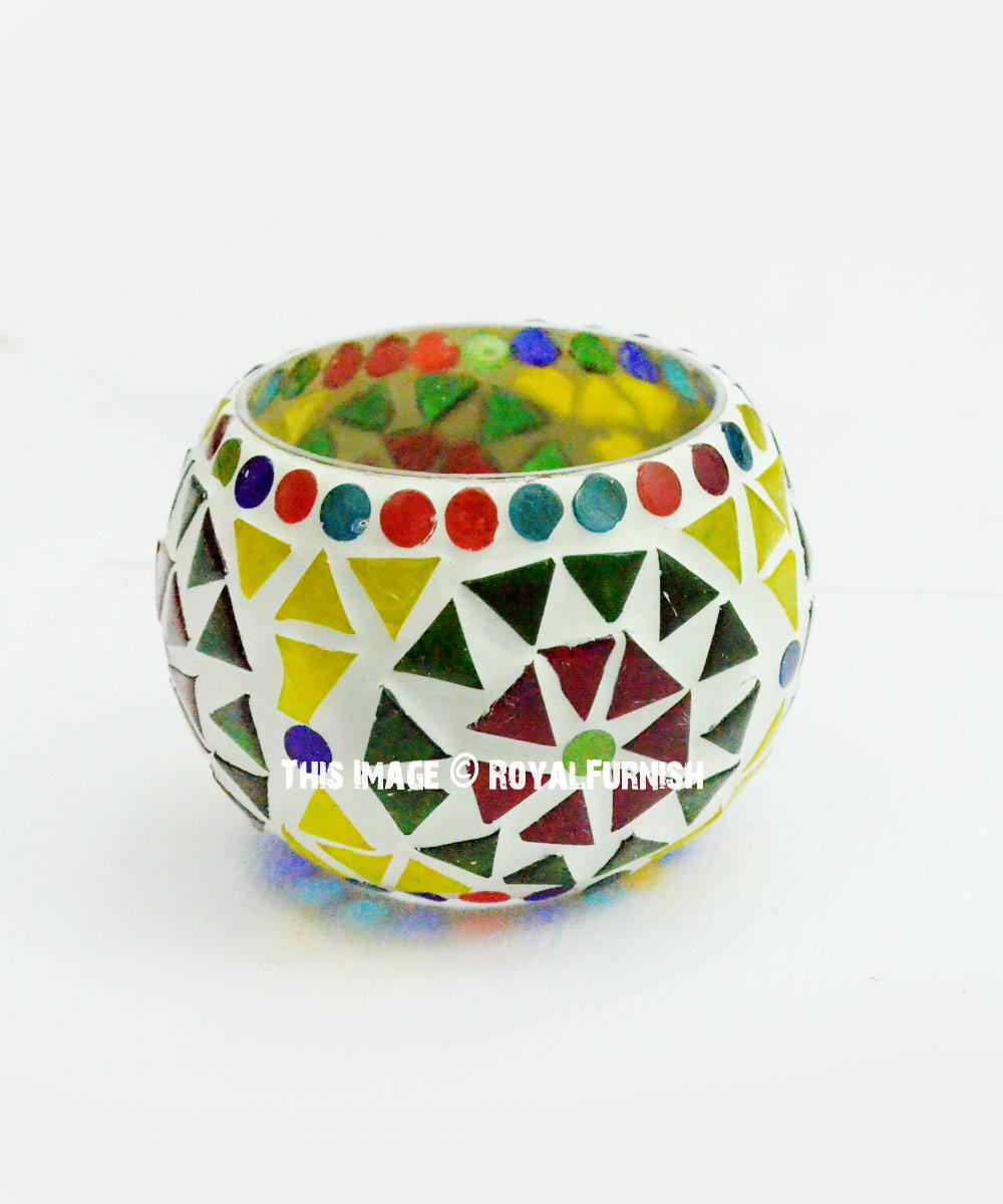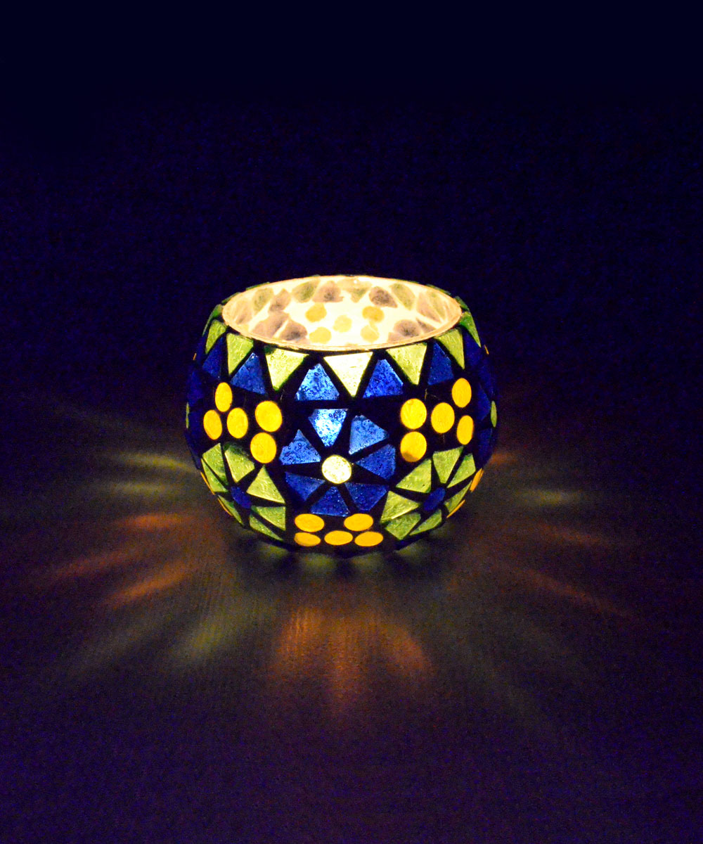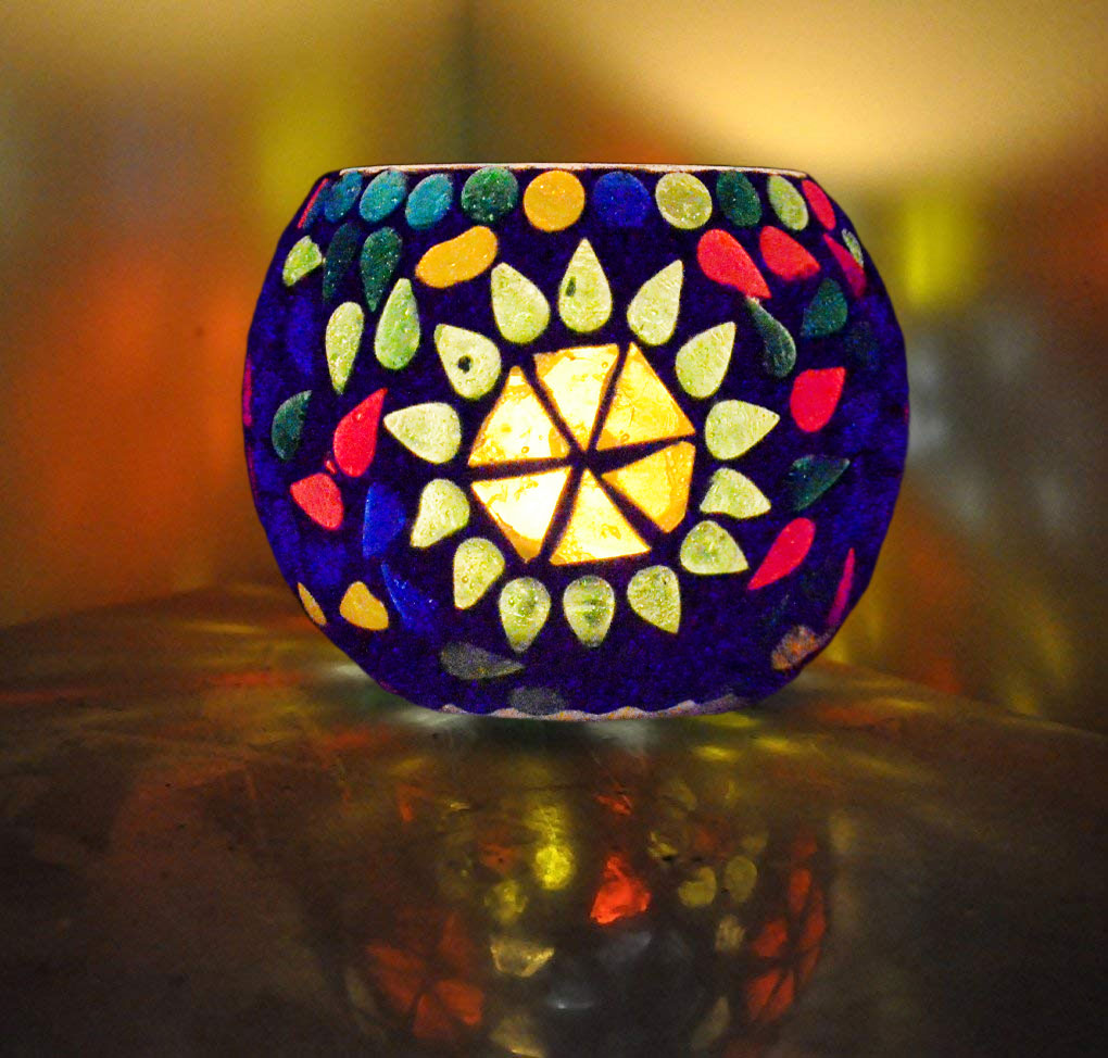 Beautifully crafted handmade mosaic ceramic tea light candle holder for soft lighting. Unique design & style increase overall appeal of this item. To maximize safety and burn time or for multi color lighting effects, a mosaic tea light candle holder is required. It is perfectly with all your needs, occasions like promotional events, parties, weddings, receptions, decorating home and restaurants etc.