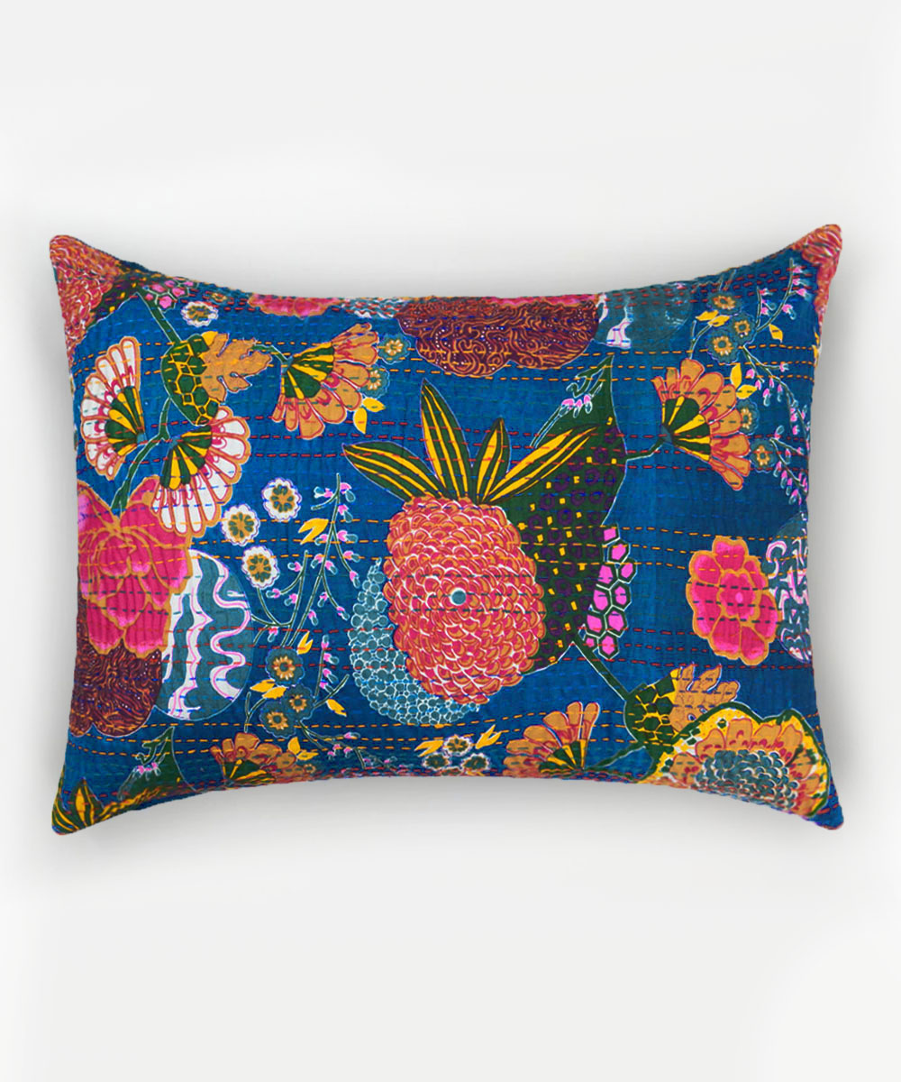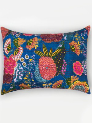 Blue Multi Tropicana Bohemian Kantha Quilted Standard Size Pillow Cover Set of Two