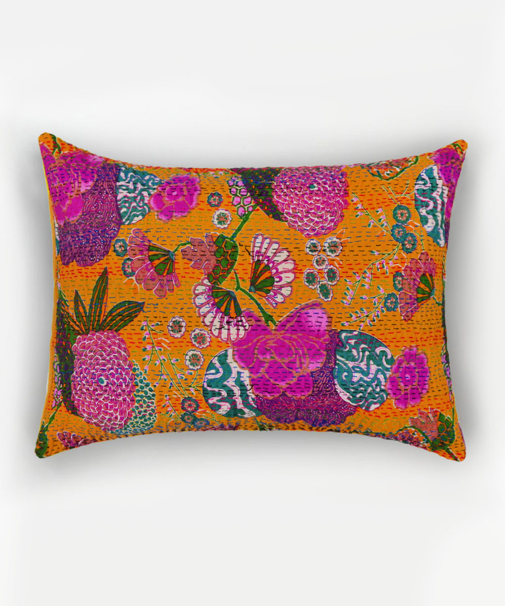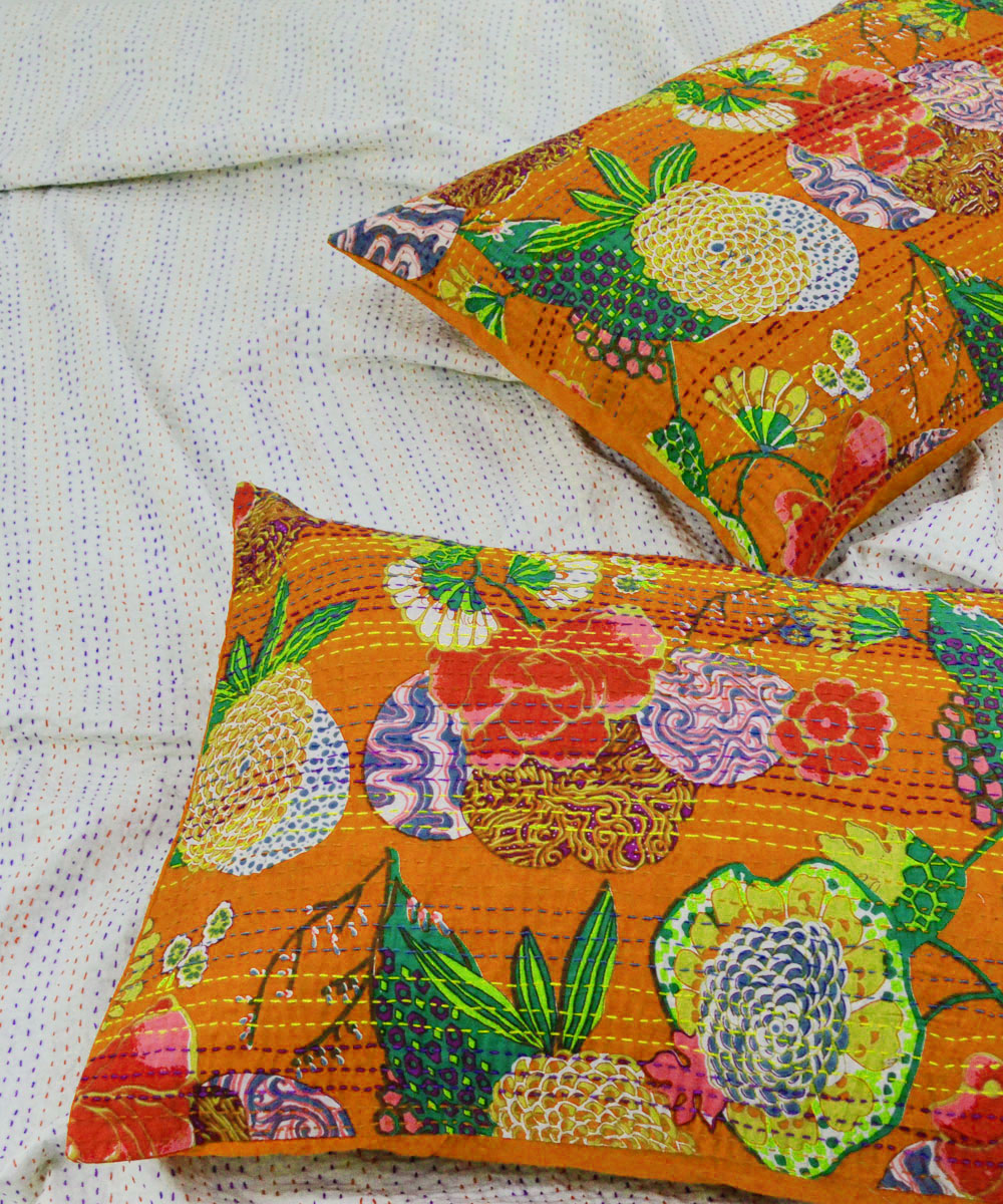 Orange Multi Tropicana Bohemian Kantha Quilted Standard Size Pillow Cover Set of Two