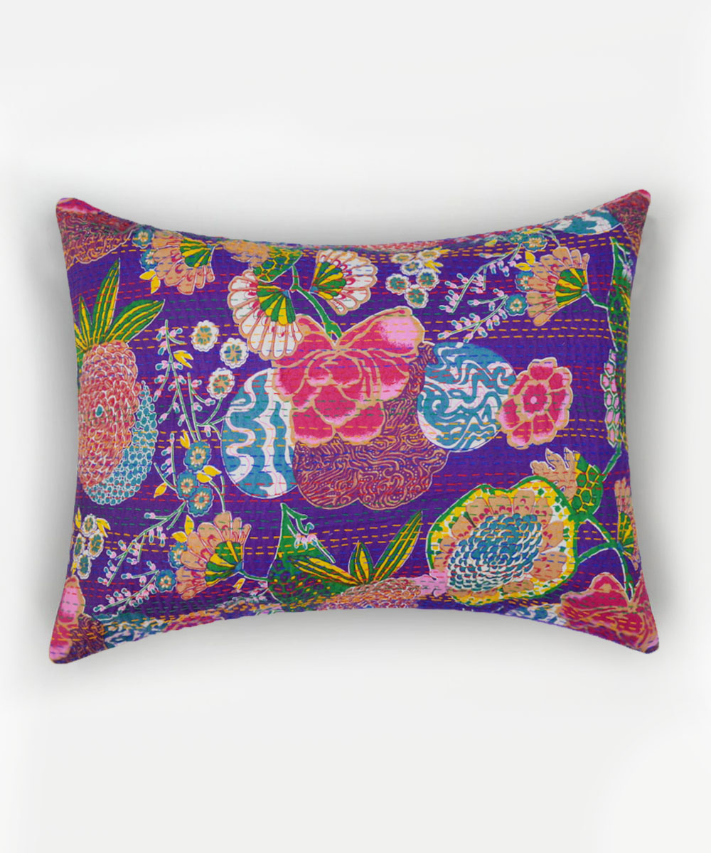 Purple Multi Tropicana Bohemian Kantha Quilted Standard Size Pillow Cover Set of Two