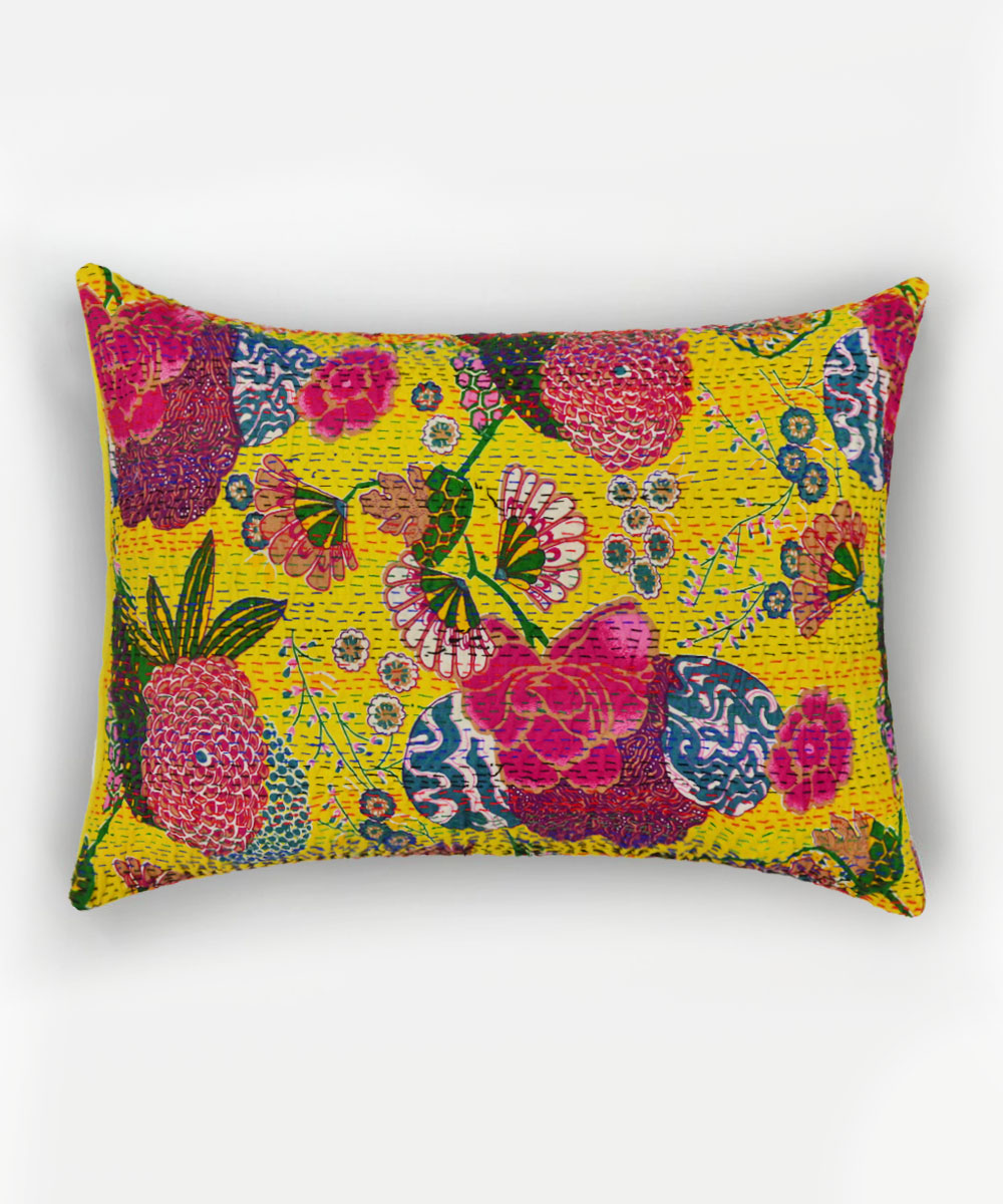 Yellow Multi Tropicana Bohemian Kantha Quilted Standard Size Pillow Cover Set of Two