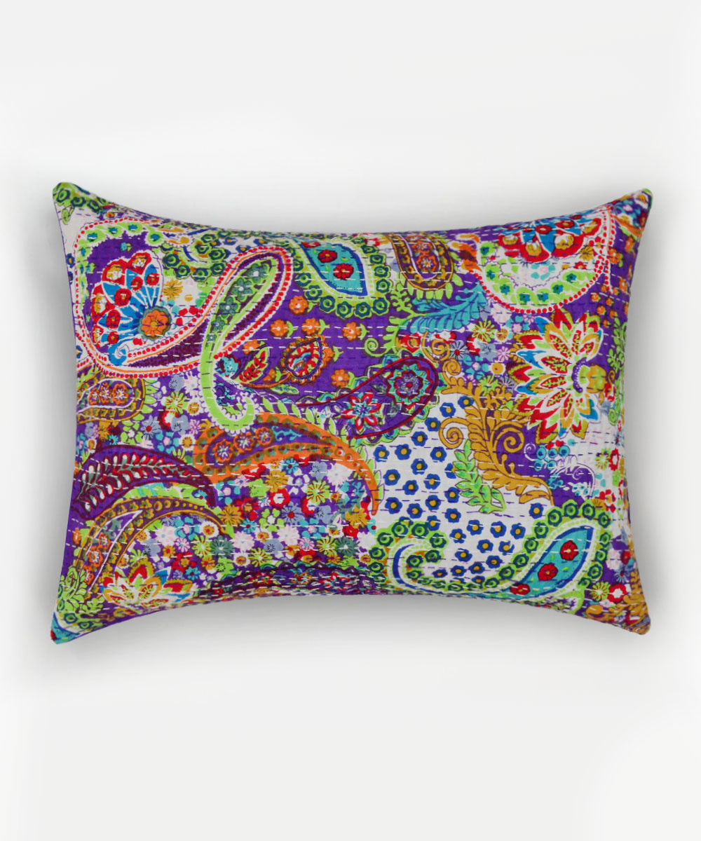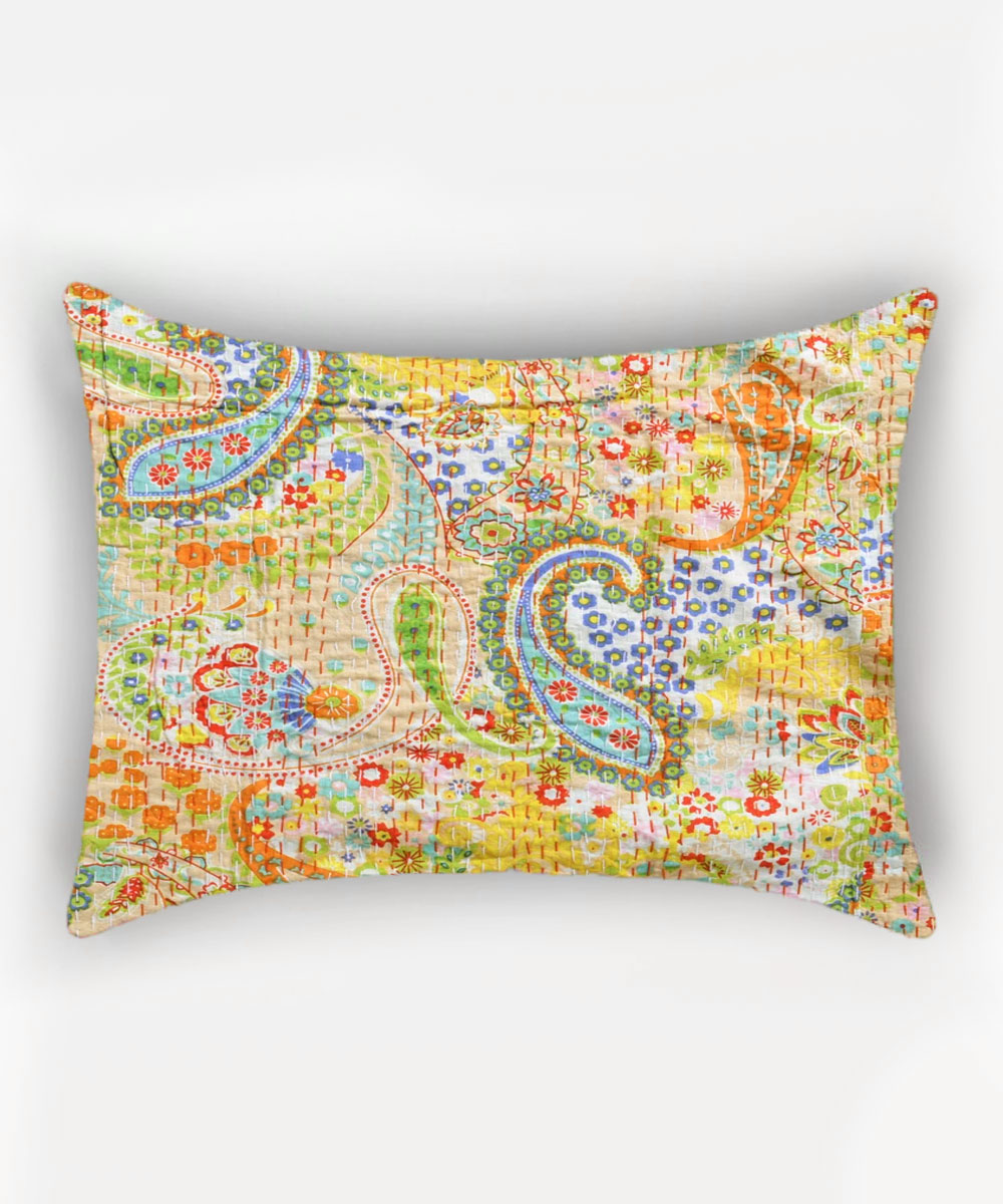 Multicolored Paisley Printed Bohemian Kantha Quilted Standard Size Pillowcase - Set of Two