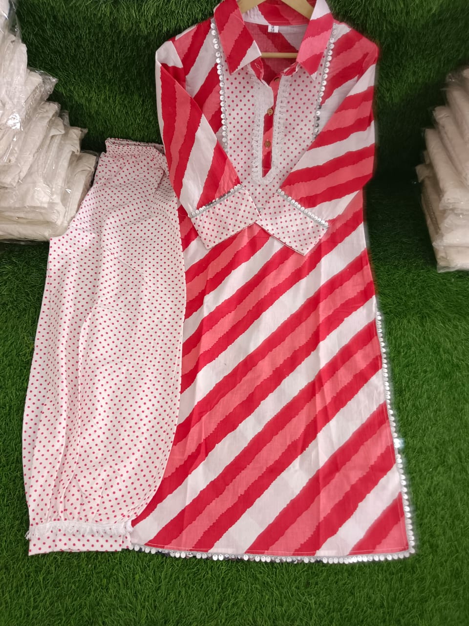 Cotton Lehariya Print Straight Kurti with Afghani Pant Salwar Kameez Suit Set