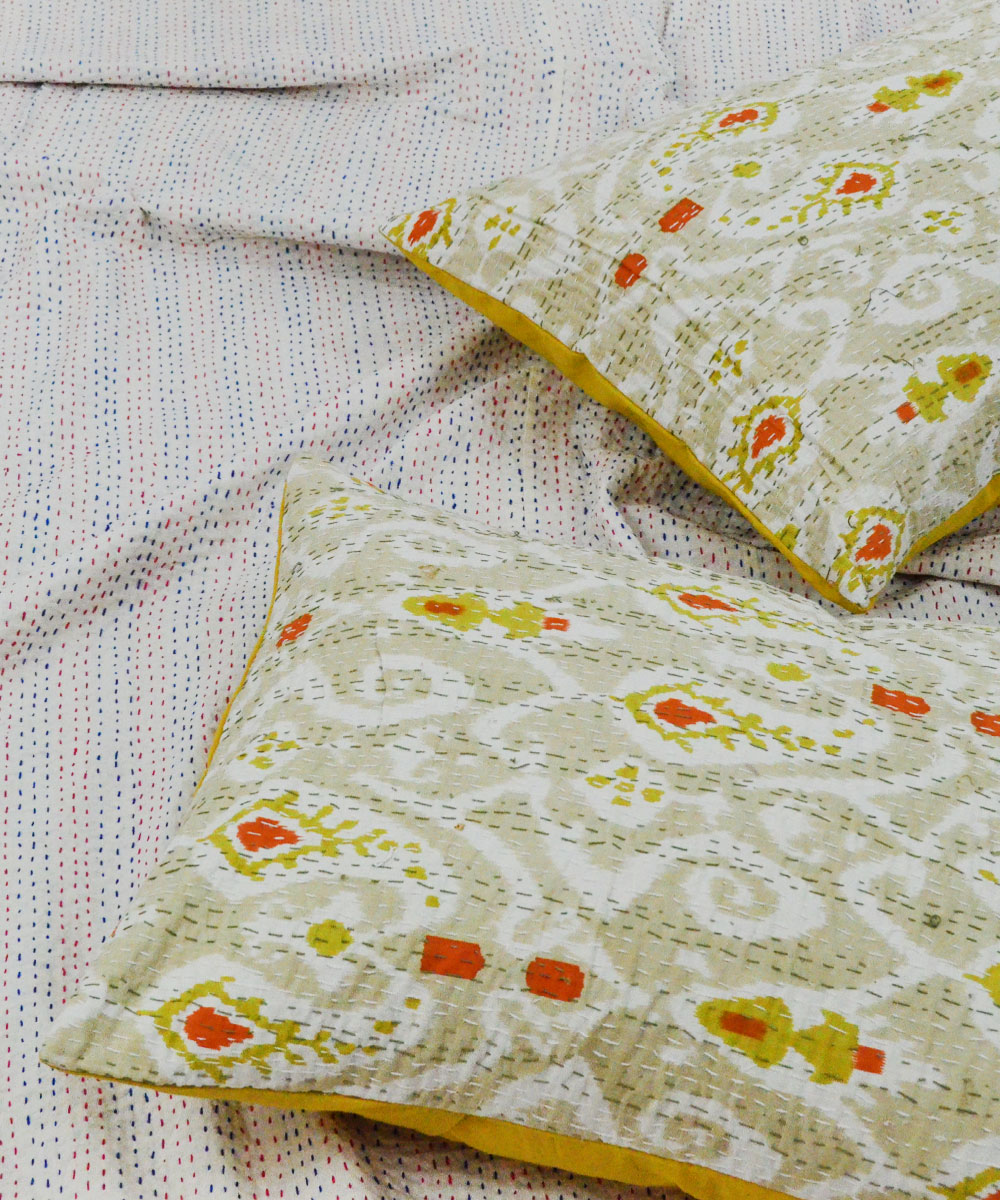 Decorative Paisley Ikat Printed Handmade Kantha Standard Pillow Sham Set of 2