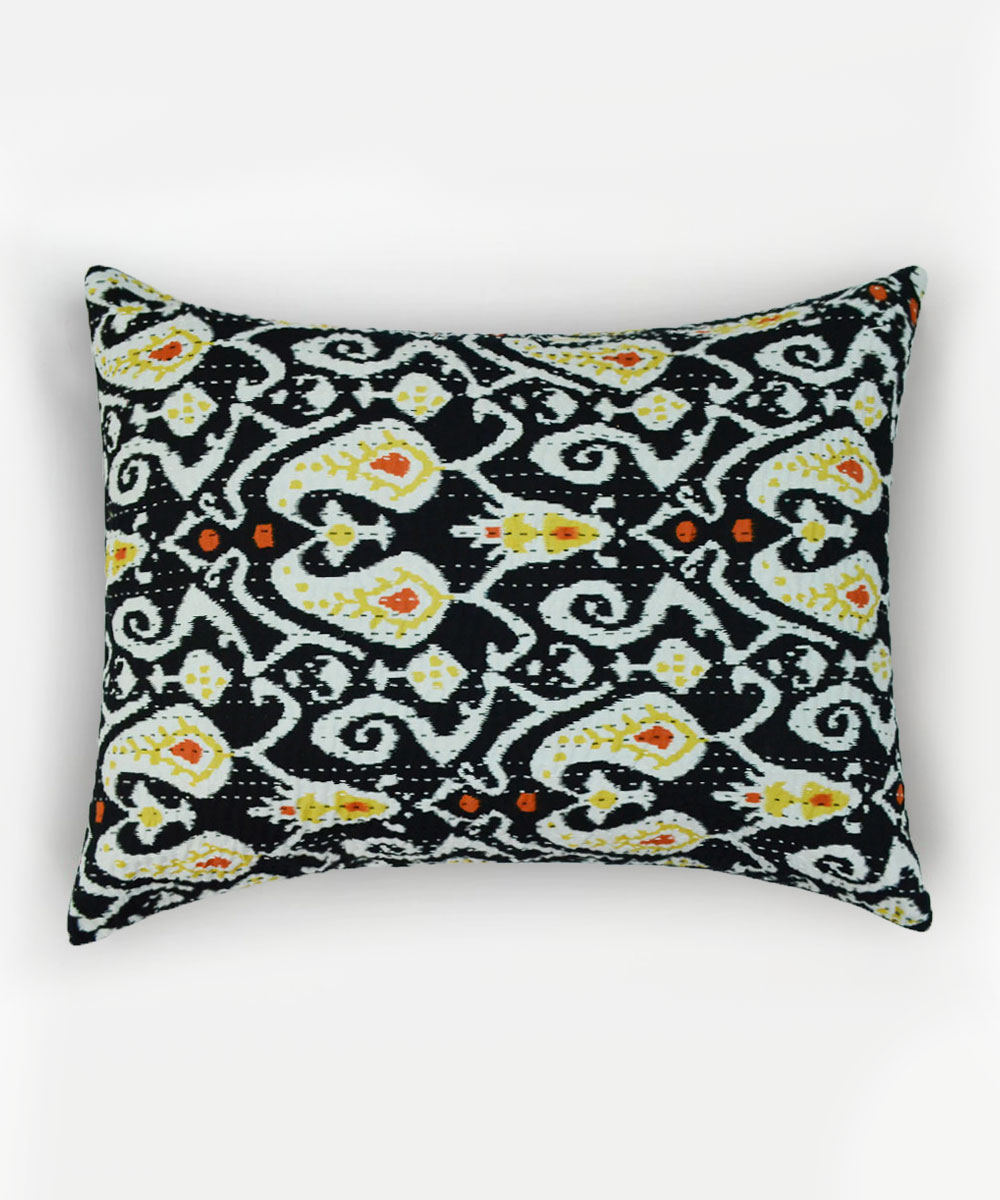 Black Decorative Paisley Ikat Printed Handmade Kantha Standard Pillow Sham Set of 2