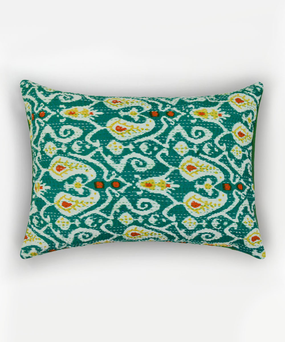 Green Decorative Paisley Ikat Printed Handmade Kantha Standard Pillow Sham Set of 2