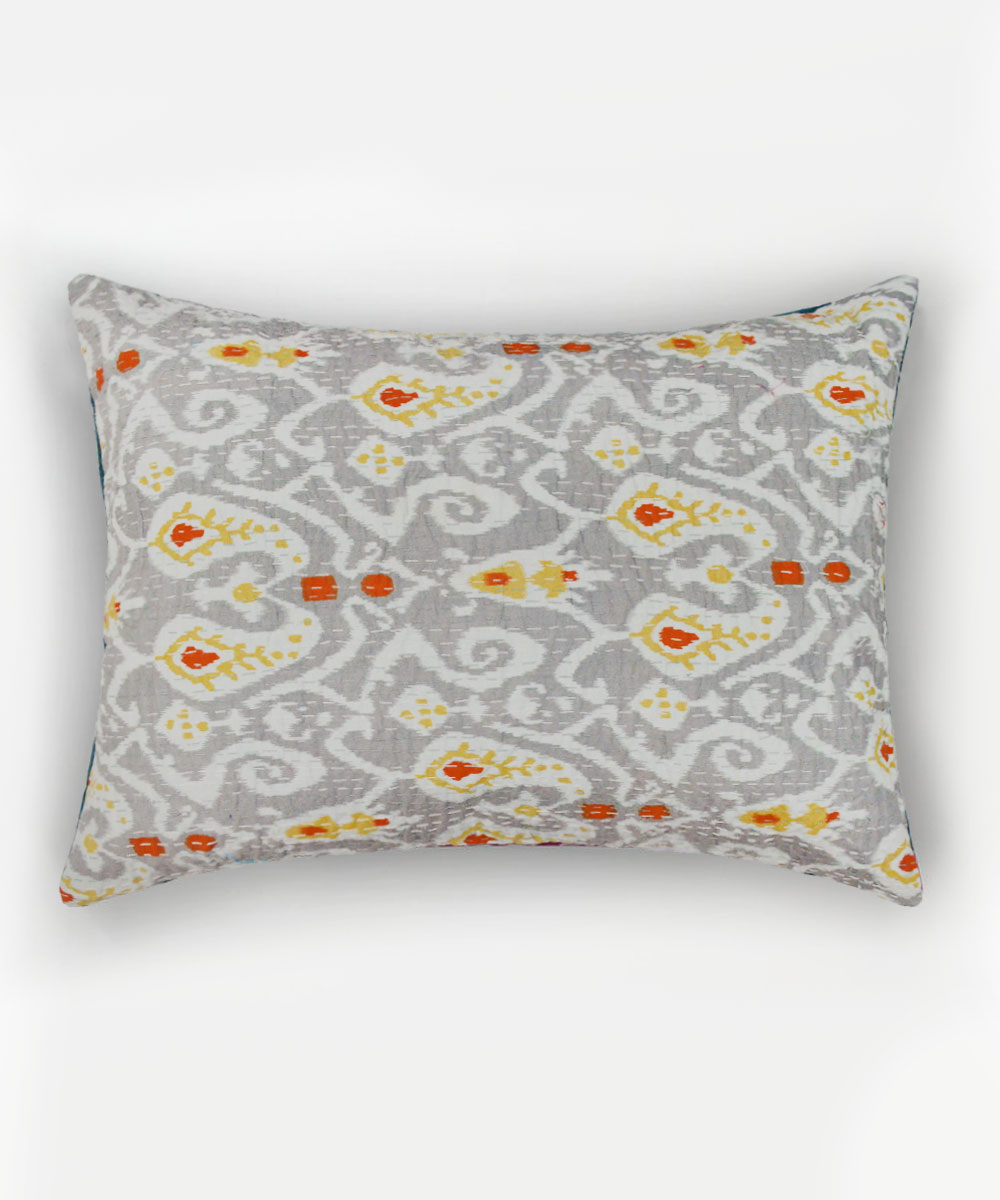 Grey Decorative Paisley Ikat Printed Handmade Kantha Standard Pillow Sham Set of 2