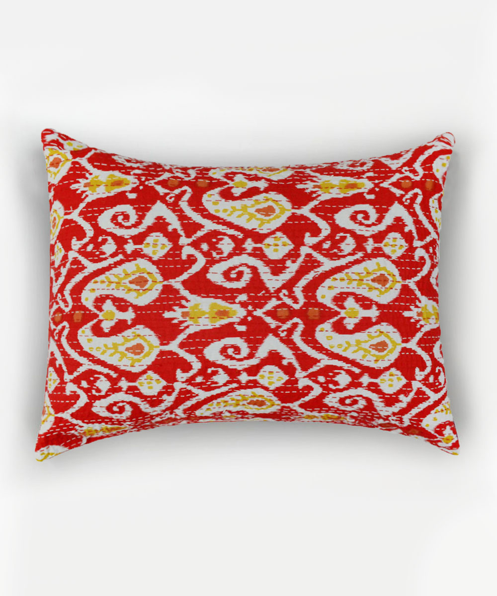 Red Decorative Paisley Ikat Printed Handmade Kantha Standard Pillow Sham Set of 2